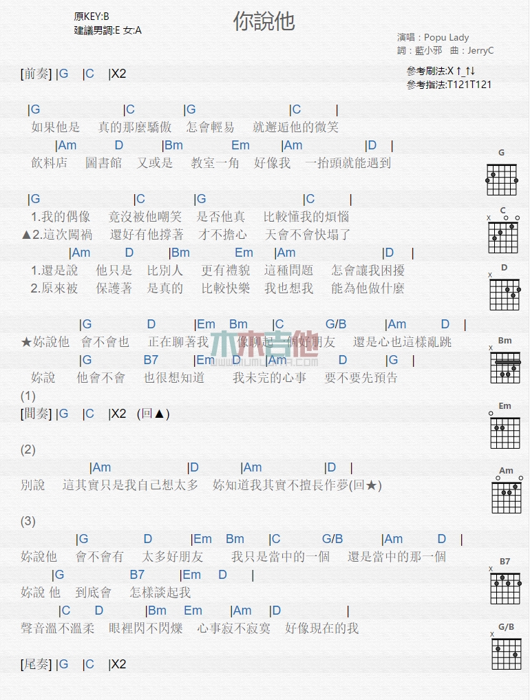 你说他吉他谱 - Popu,Lady - 吉他弹唱谱