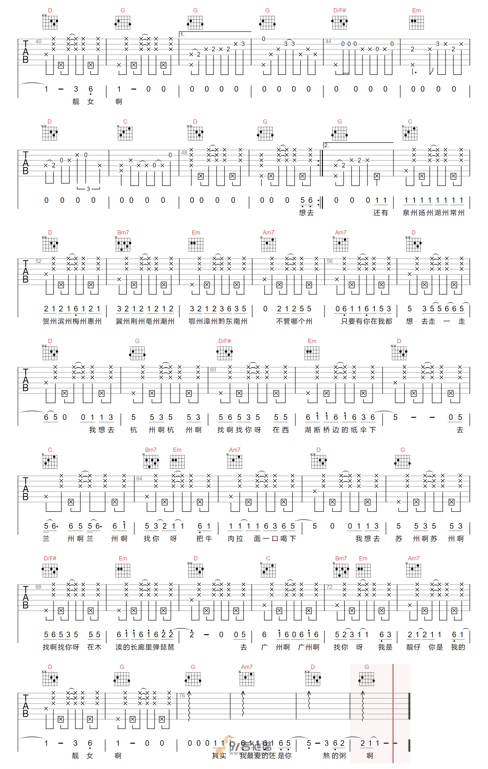 当前位置:琴谱网>吉他弹唱>州州