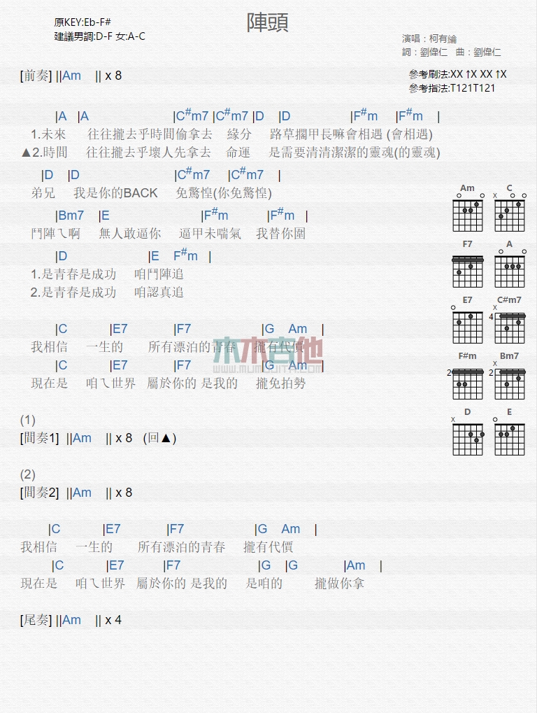 阵头吉他谱 - 柯有伦 - 吉他弹唱谱