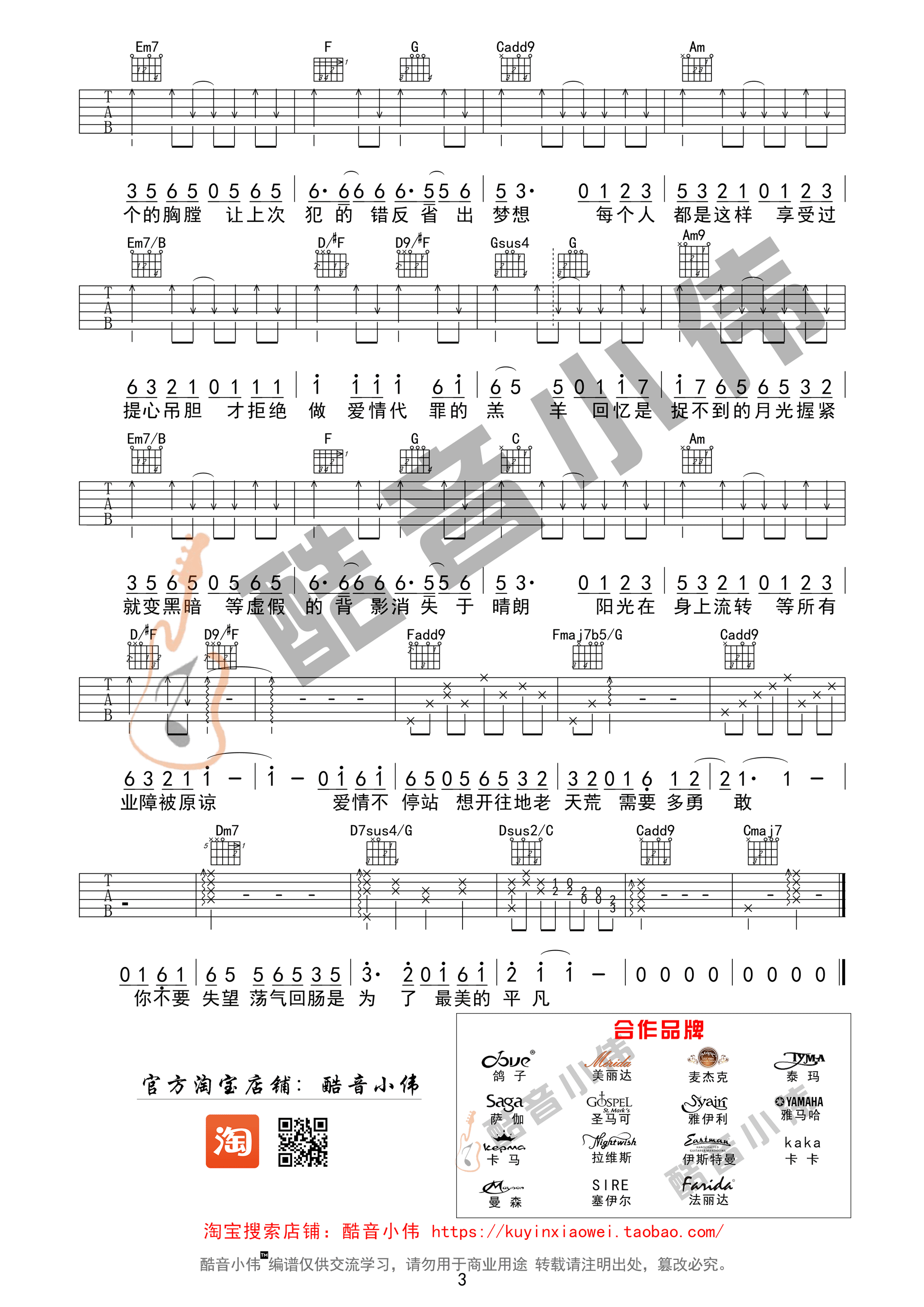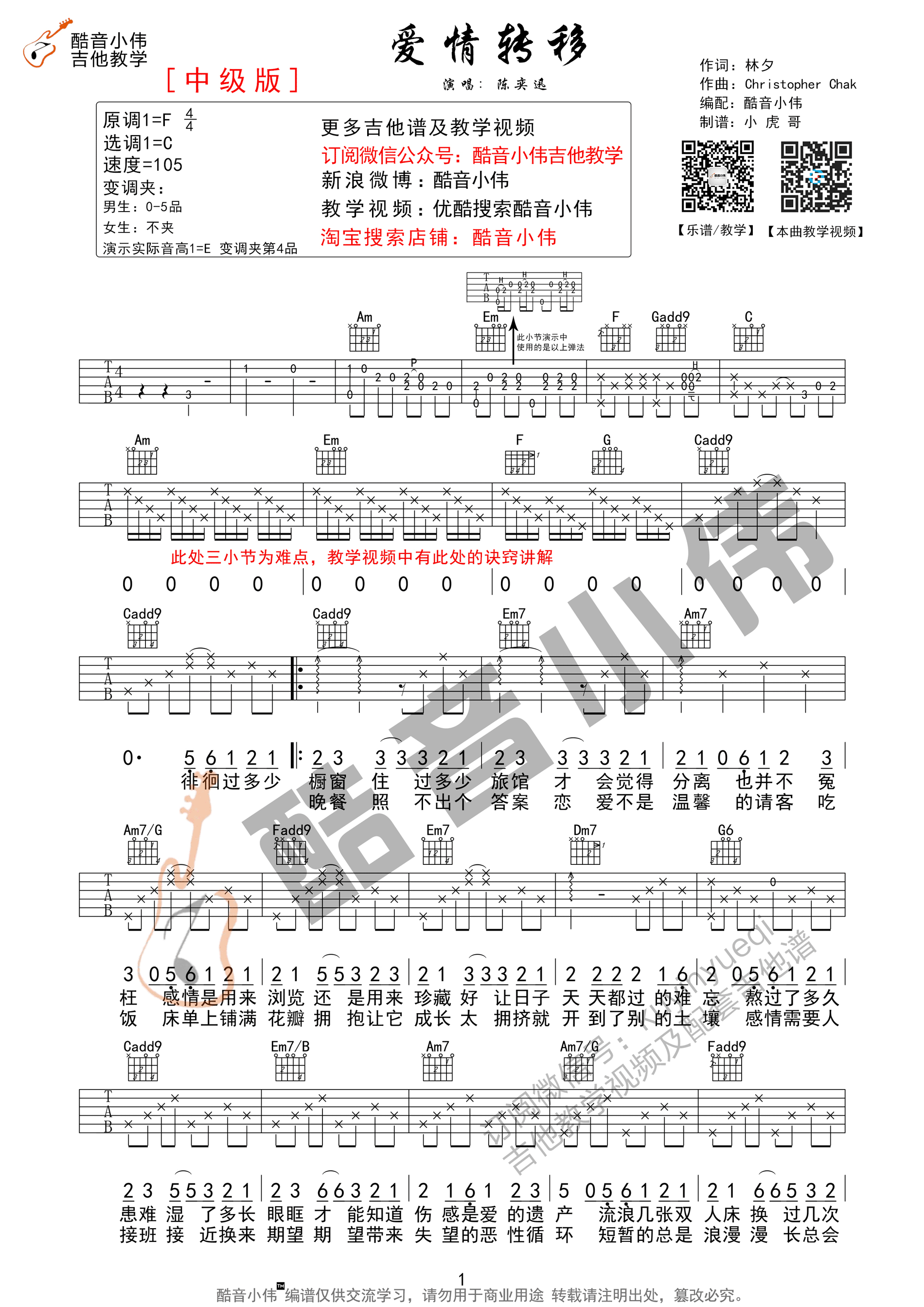 曲谱介绍: 陈奕迅《爱情转移中级版》吉他弹唱谱,共有3张高清图谱。