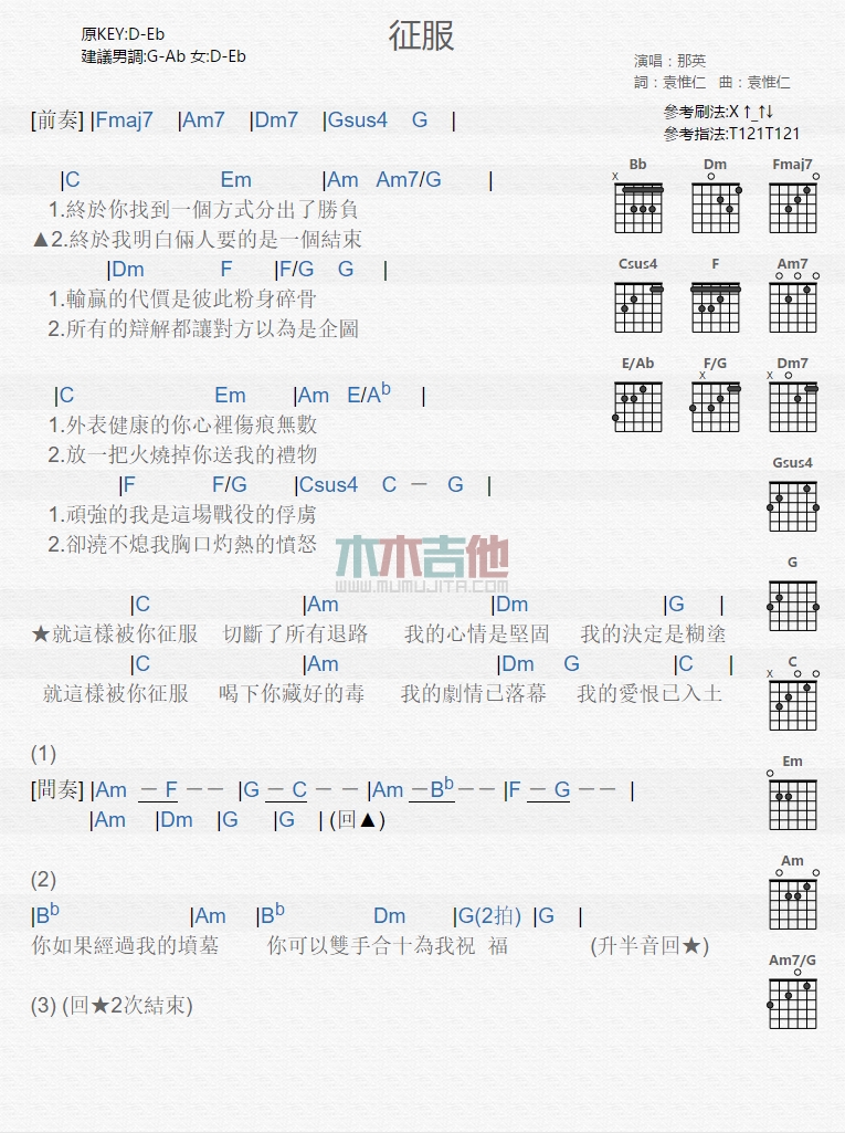 当前位置:琴谱网>吉他弹唱>征服