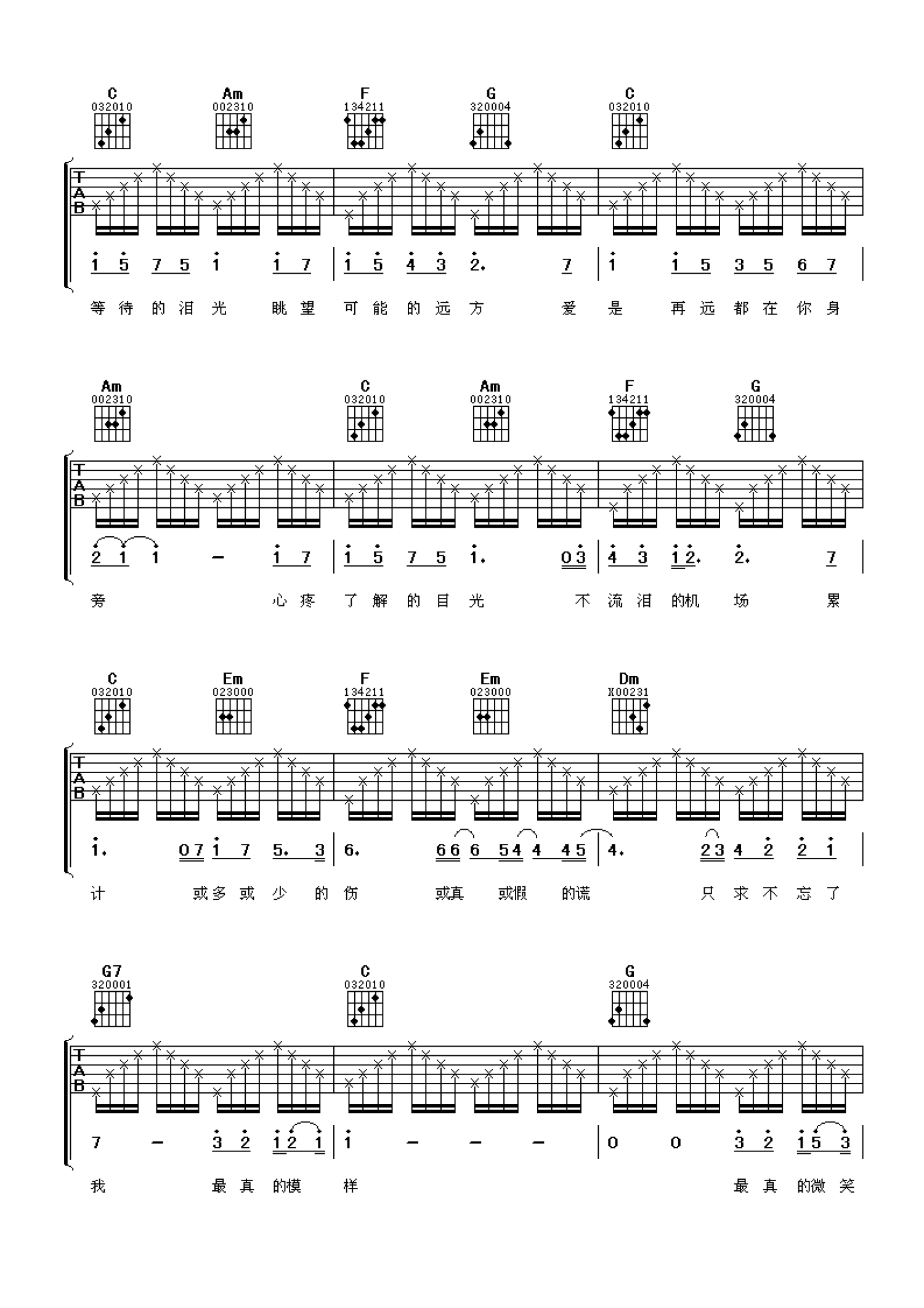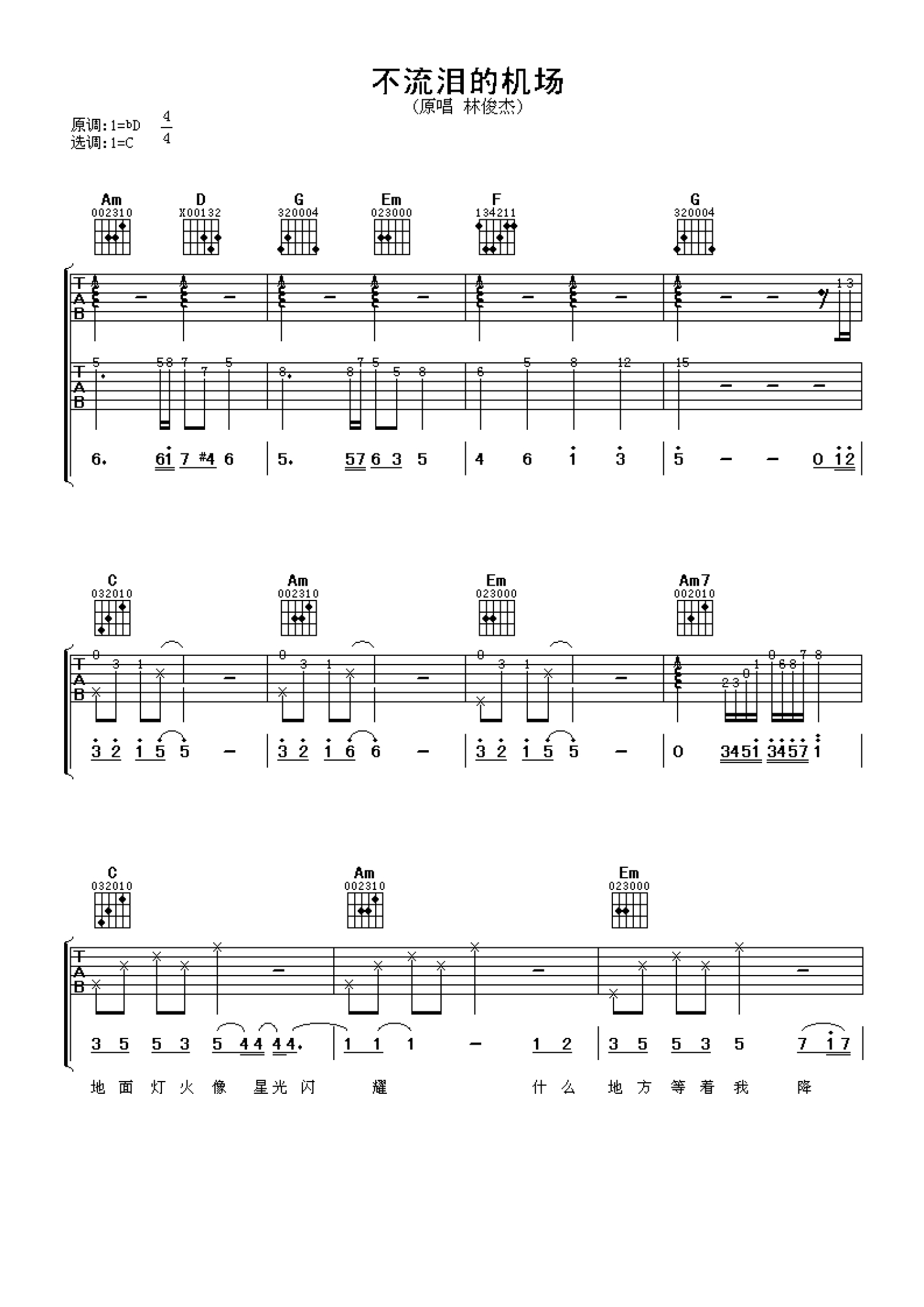 不流泪的机场吉他谱 - 林俊杰 - C调吉他弹唱谱
