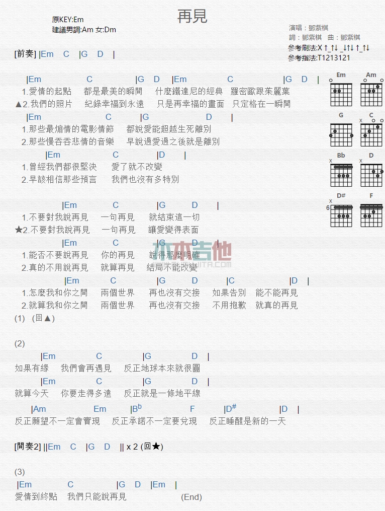 再见吉他谱 - 邓紫棋 - 吉他弹唱谱