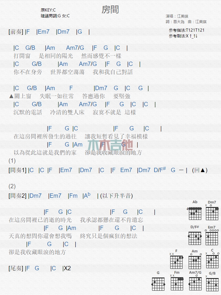 房间吉他谱 - 江美琪 - 吉他弹唱谱