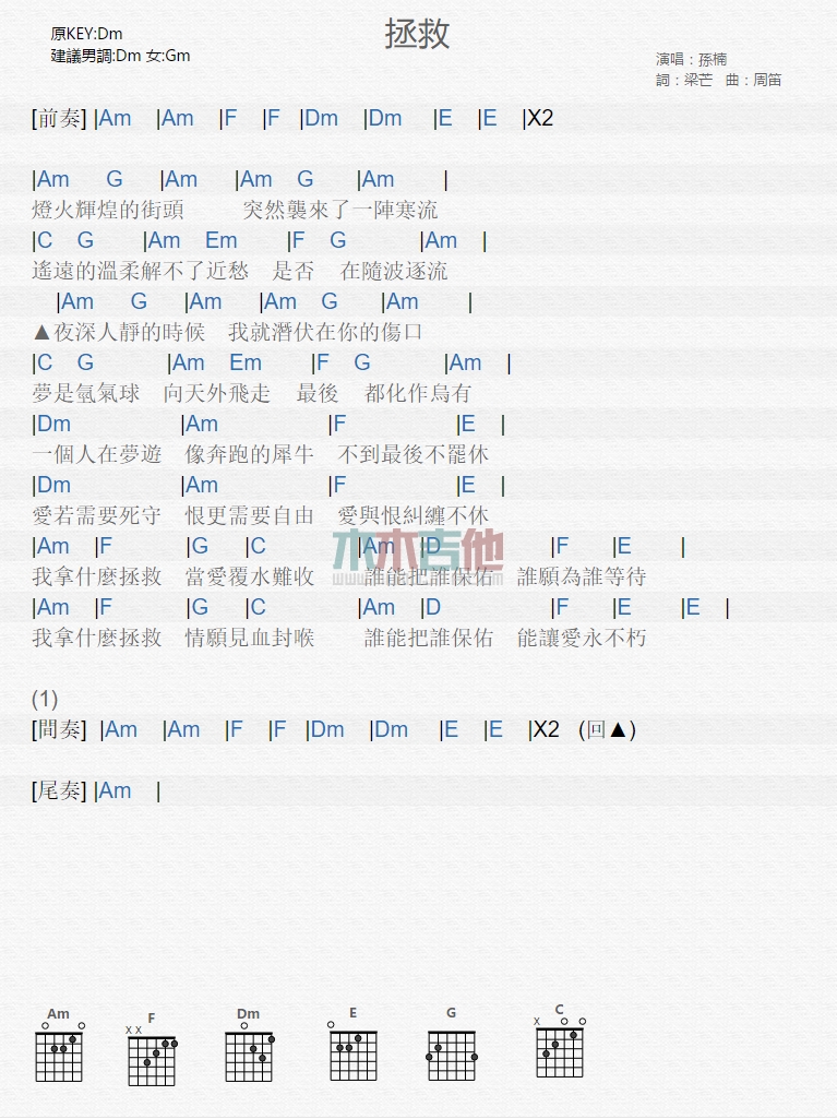 拯救吉他谱 - 孙楠 - 吉他弹唱谱