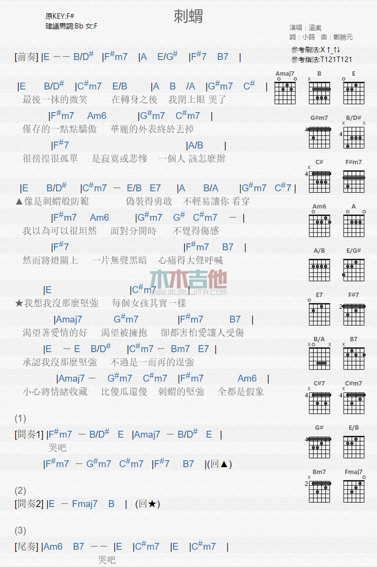 曲谱介绍: 温岚《刺猬》吉他弹唱谱,共有1张高清图谱,免翻页排版设计。