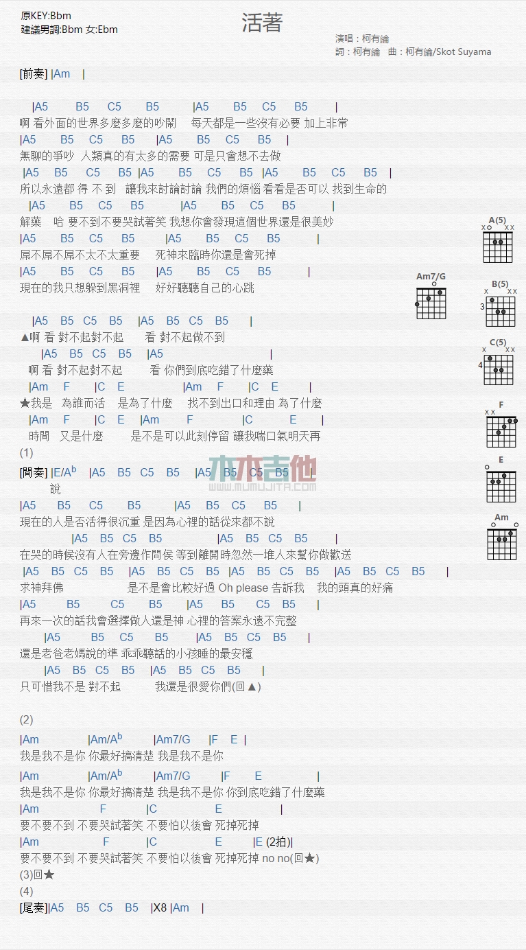 活着吉他谱 - 柯有伦 - 吉他弹唱谱