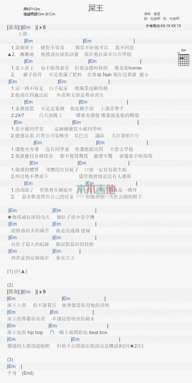 屎王吉他谱 - 蛋堡 - 吉他弹唱谱