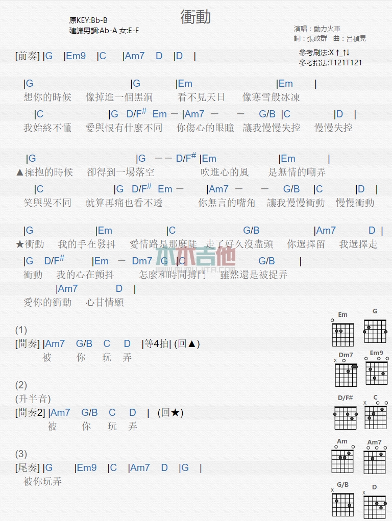 冲动吉他谱 - 动力火车 - 吉他弹唱谱
