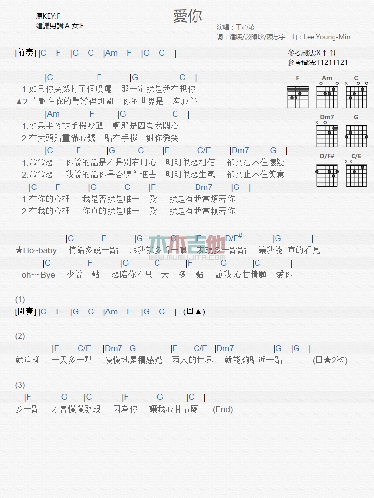 爱你吉他谱 - 王心凌 - 吉他弹唱谱