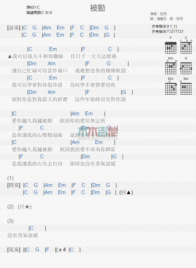 当前位置:琴谱网>吉他弹唱>被动