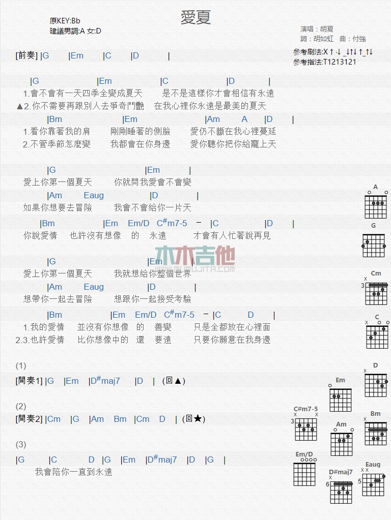 爱夏吉他谱 - 胡夏 - 吉他弹唱谱