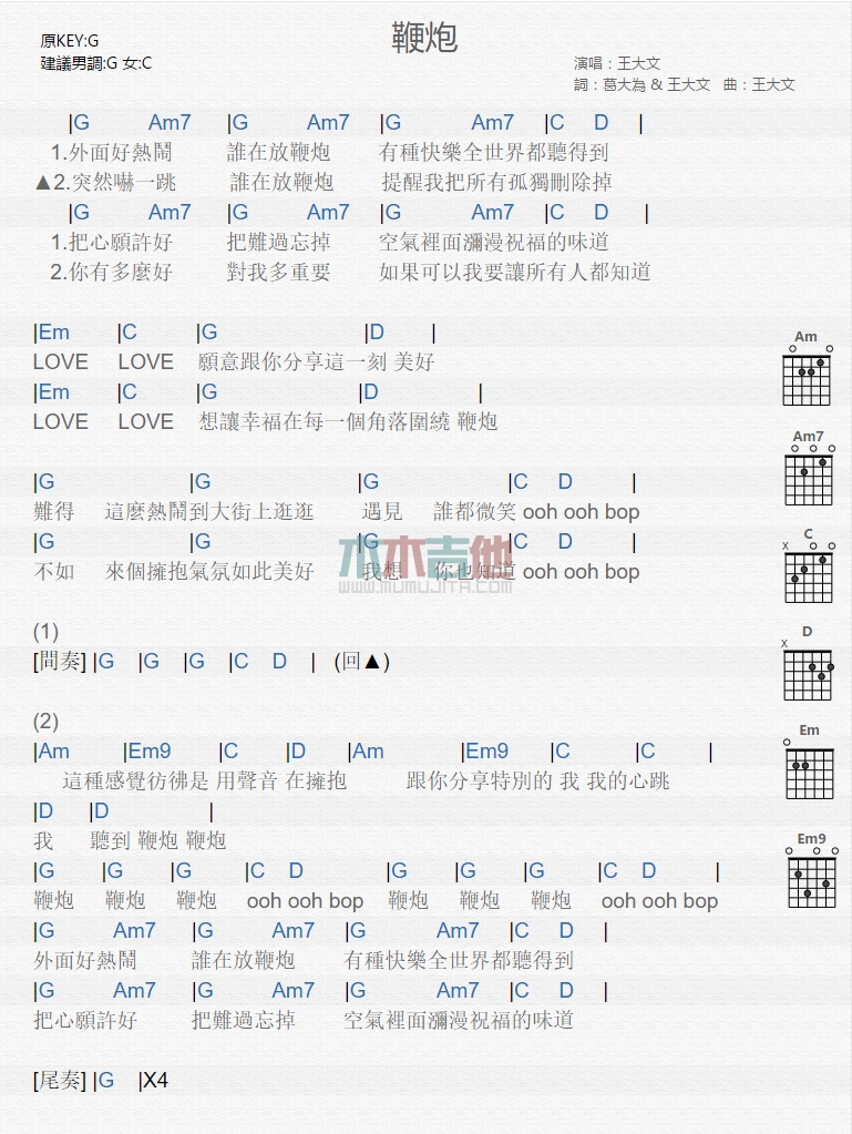 鞭炮吉他谱 - 王大文 - 吉他弹唱谱