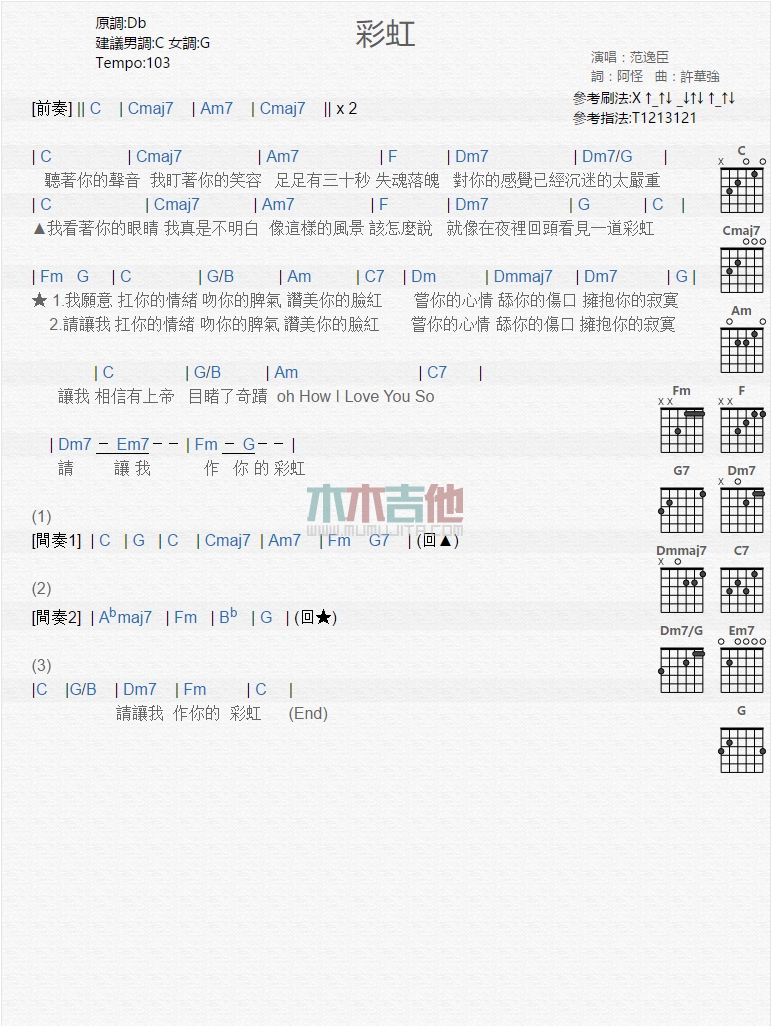 彩虹吉他谱 - 范逸臣 - 吉他弹唱谱