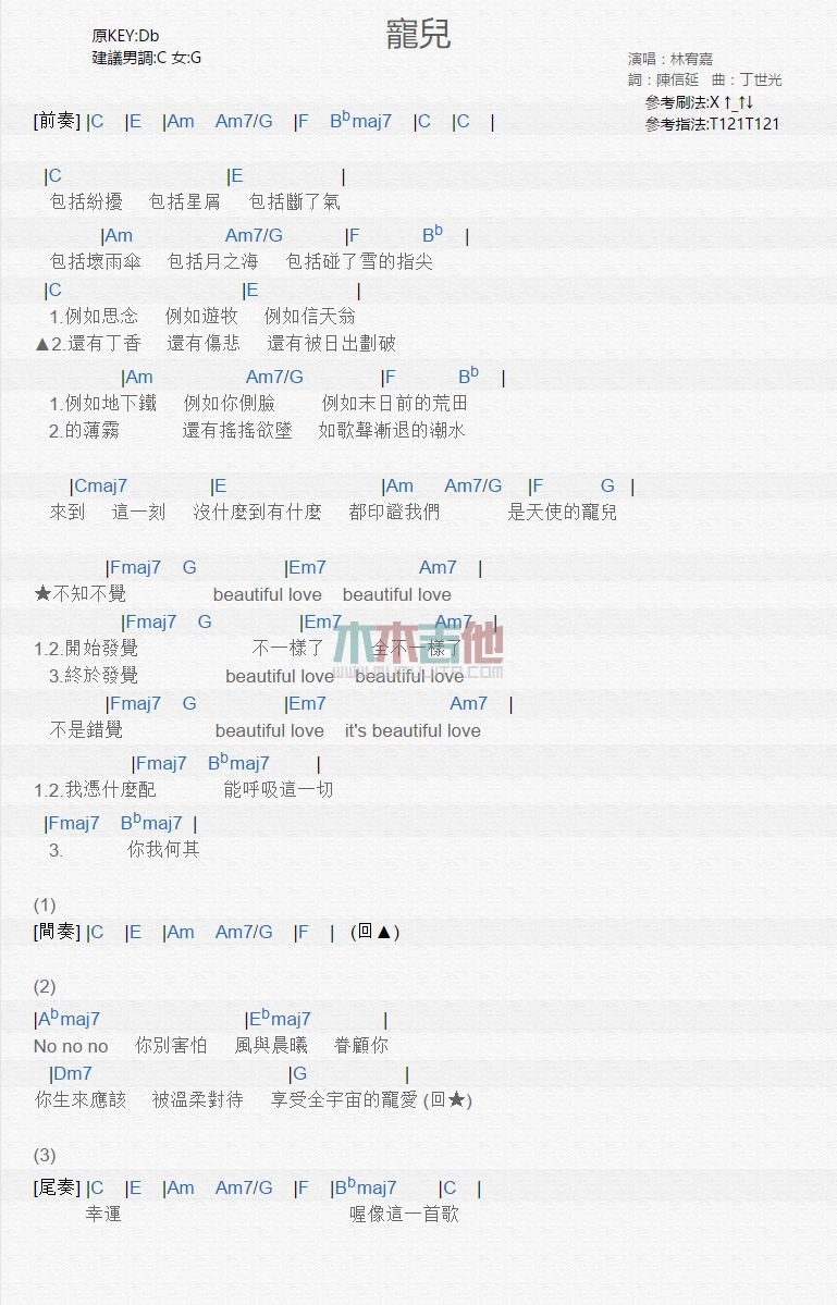 宠儿吉他谱 - 林宥嘉 - 吉他弹唱谱