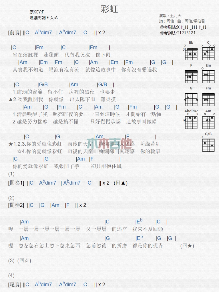 彩虹吉他谱 - 五月天 - 吉他弹唱谱