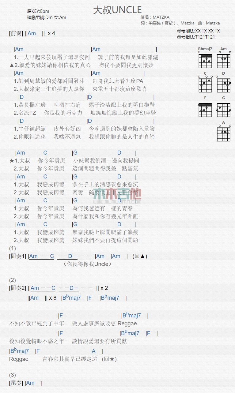 大叔吉他谱 - MATZKA - 吉他弹唱谱