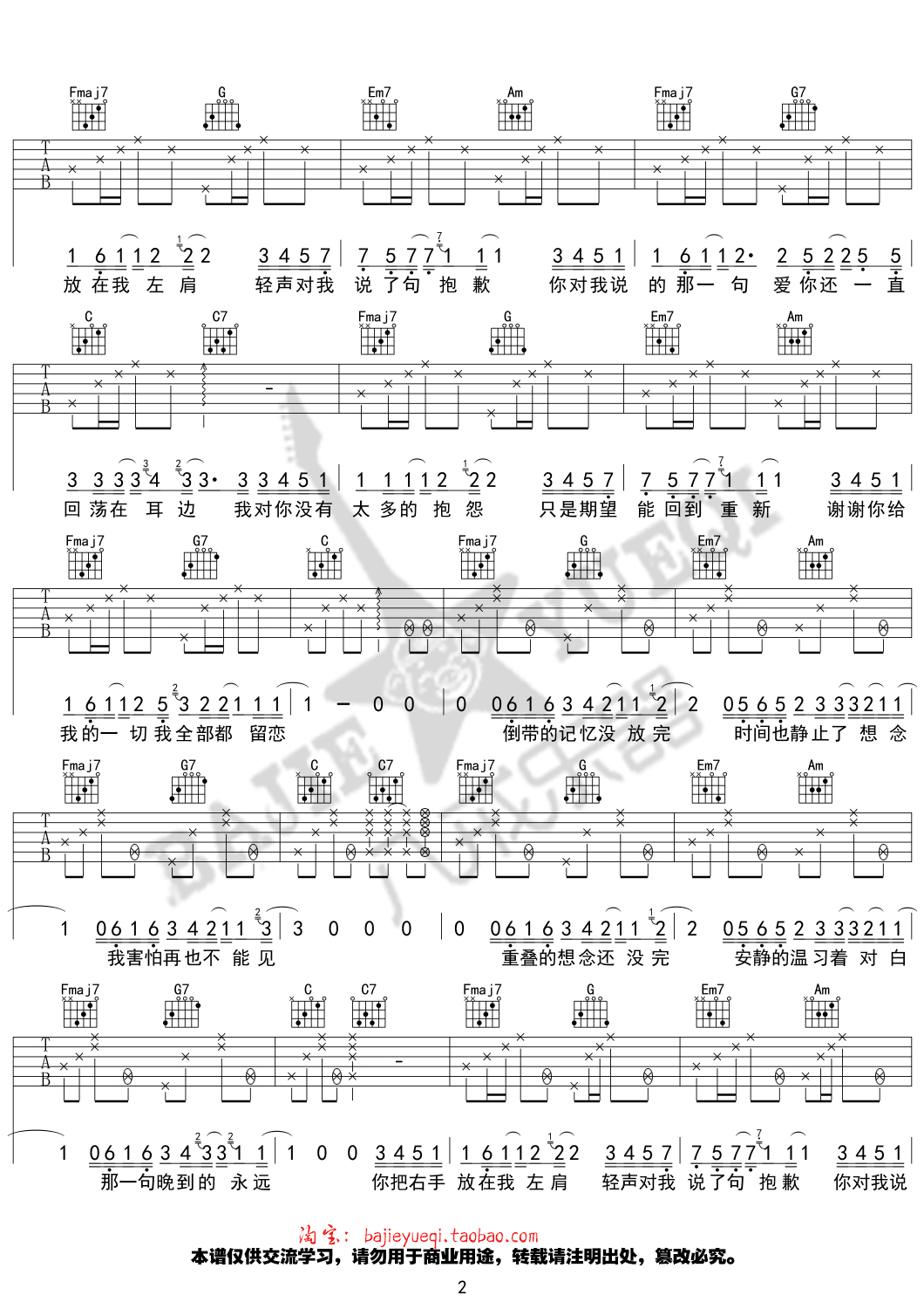 当前位置:琴谱网>吉他弹唱>左肩