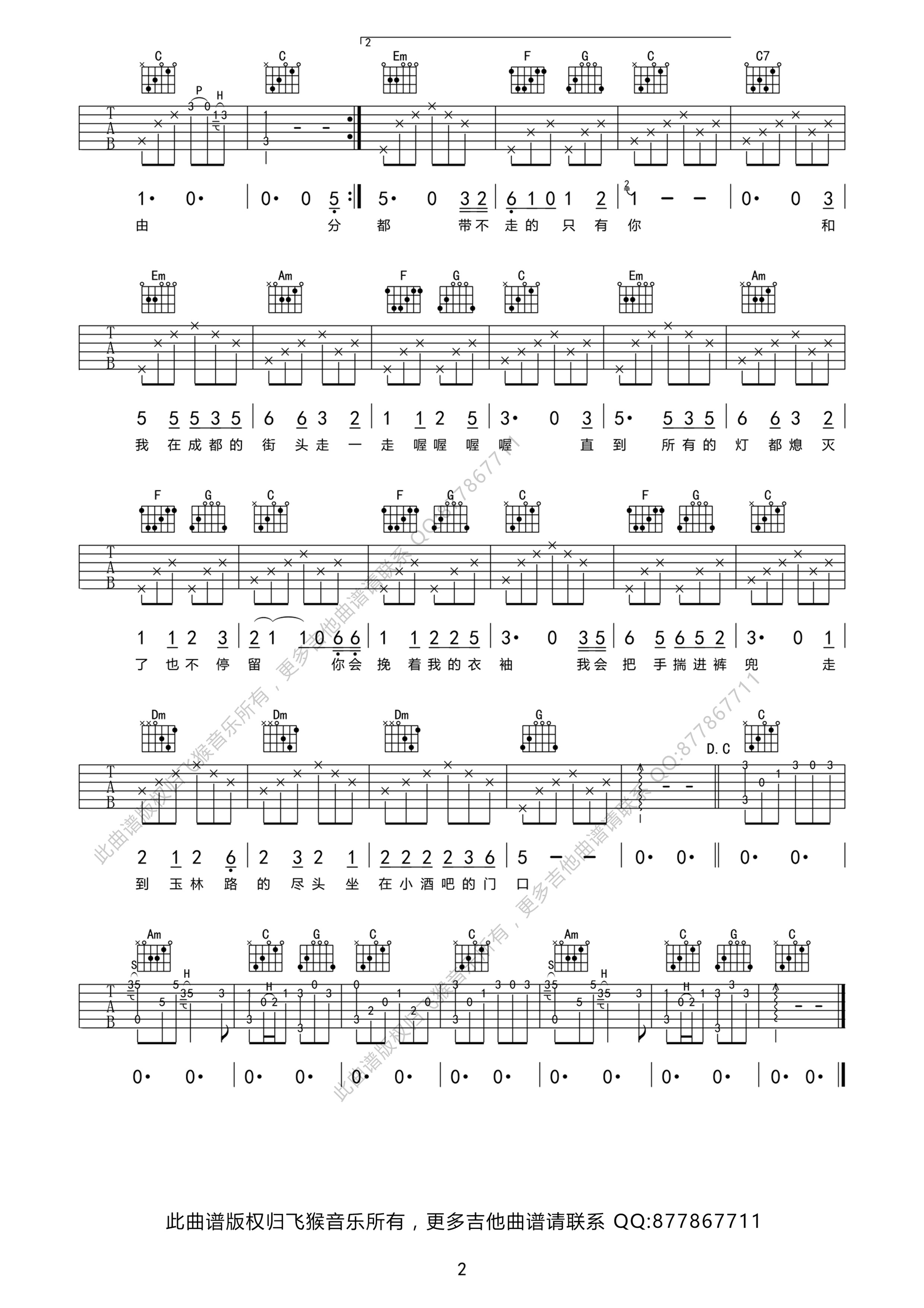 当前位置:琴谱网>吉他弹唱>成都