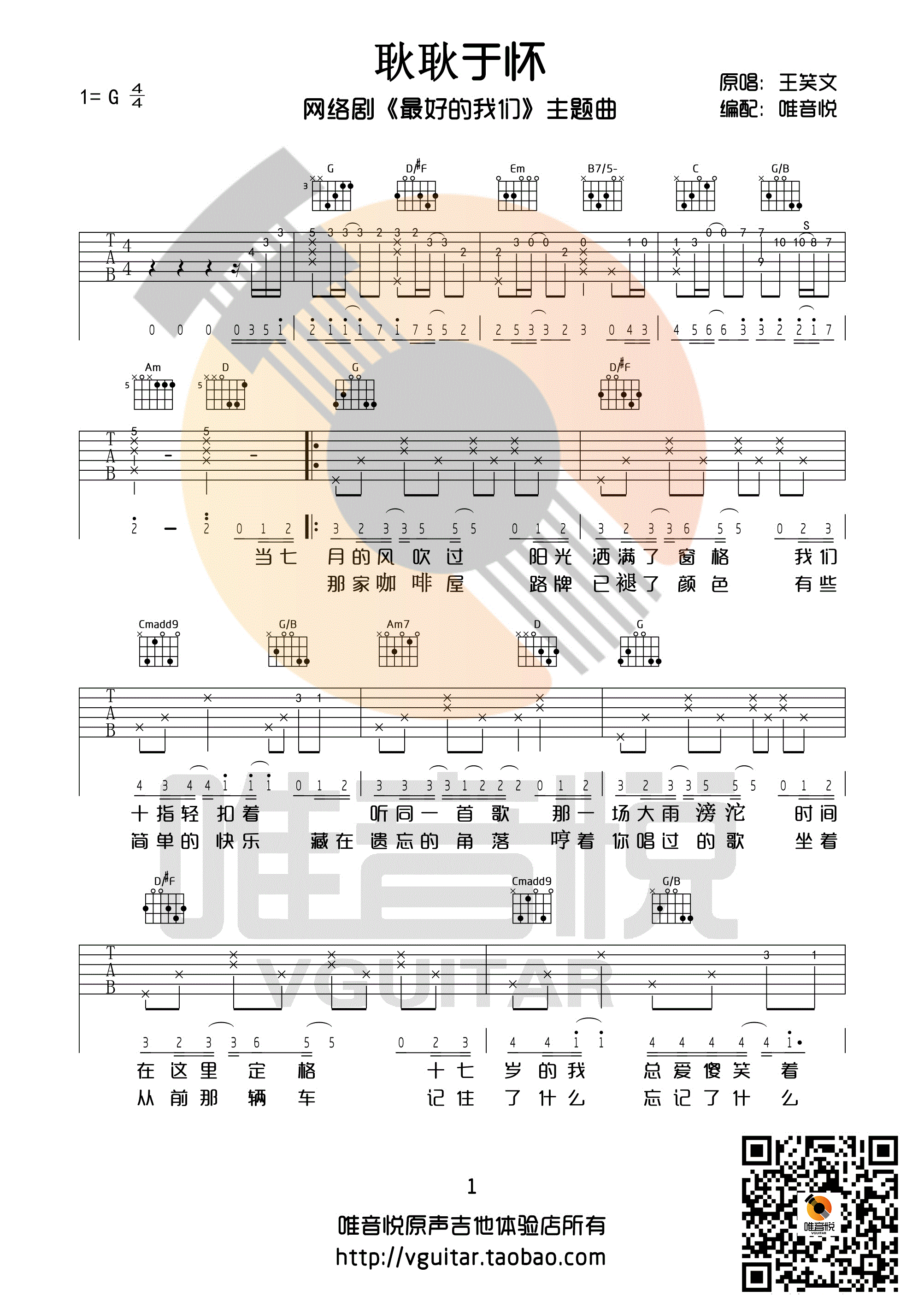 曲谱介绍: 王笑文《耿耿于怀》吉他弹唱谱,共有4张高清图谱。