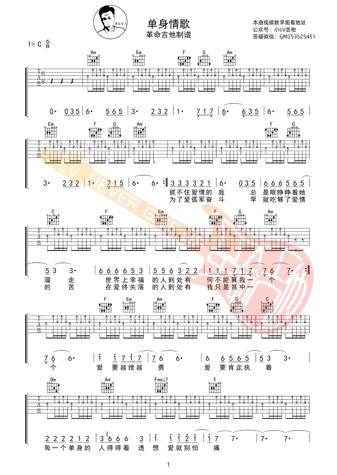 当前位置:琴谱网>吉他弹唱>单身情歌