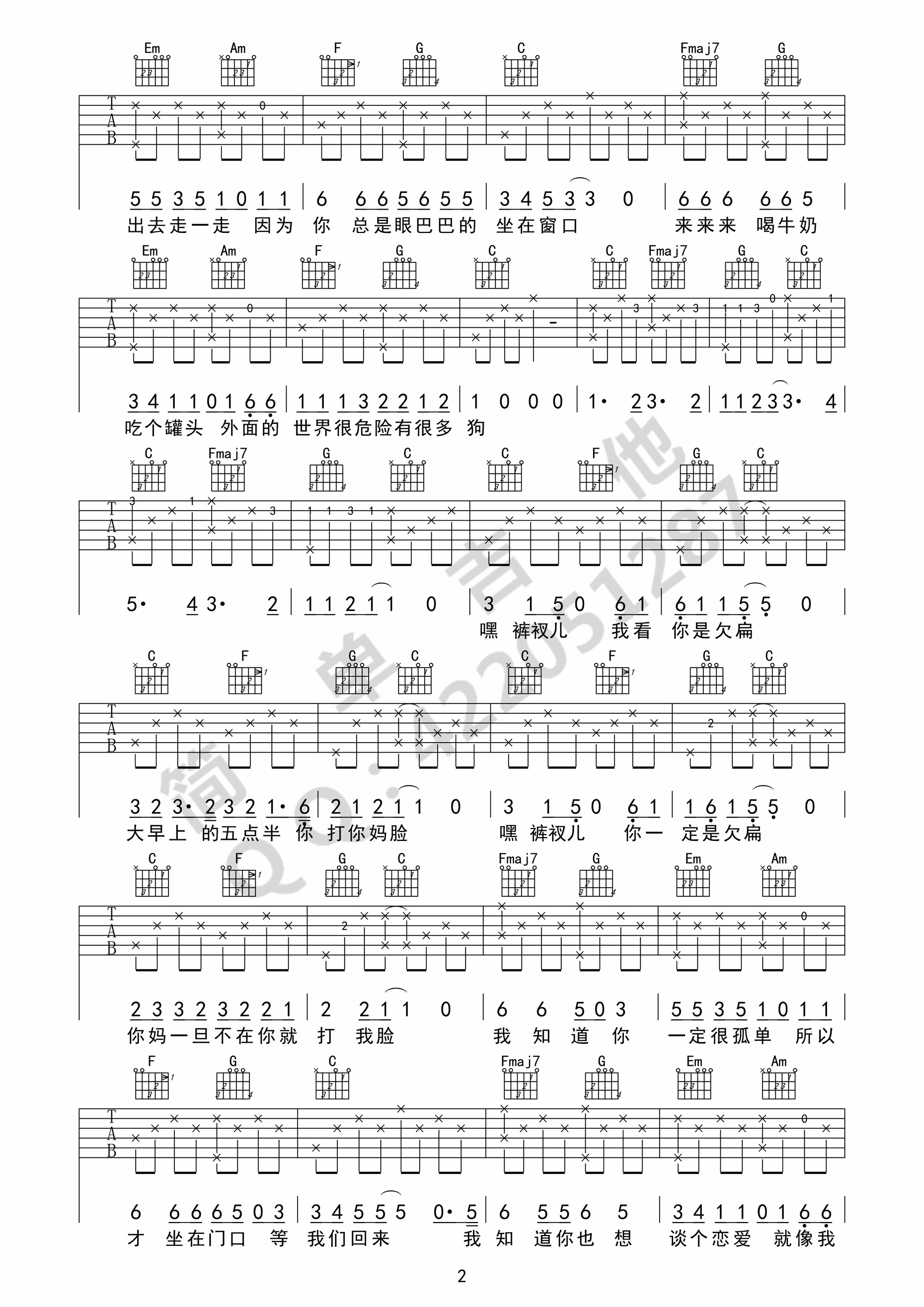 曲谱介绍: 宋冬野《嘿,裤衩儿》吉他弹唱谱,共有3张高清图谱。