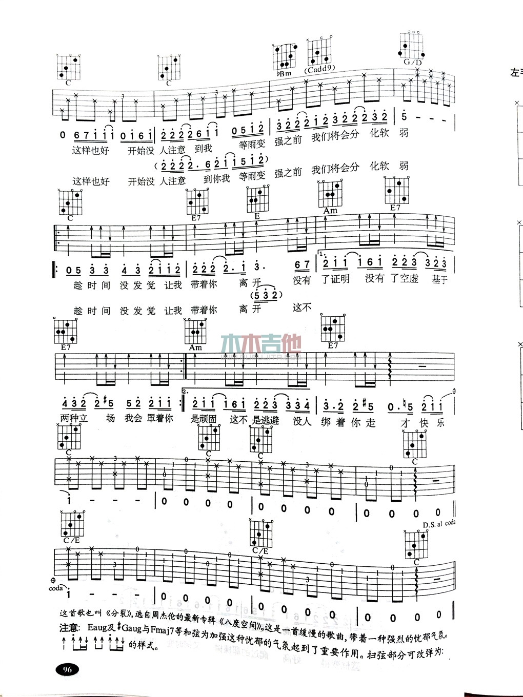曲谱介绍: 周杰伦《分裂离开》吉他弹唱谱,共有2张高清图谱,免翻页排版设计。