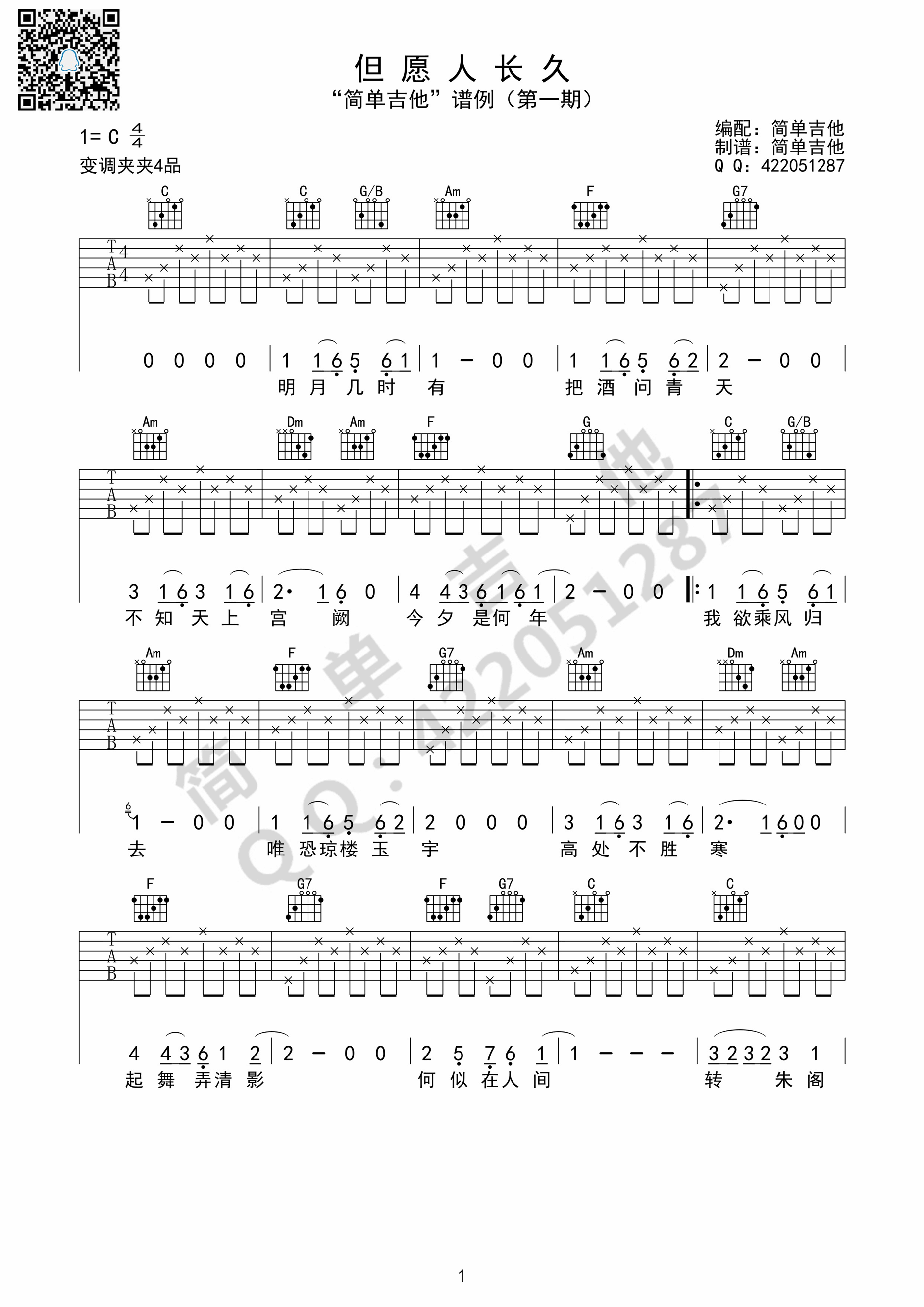 当前位置:琴谱网>吉他弹唱>但愿人长久