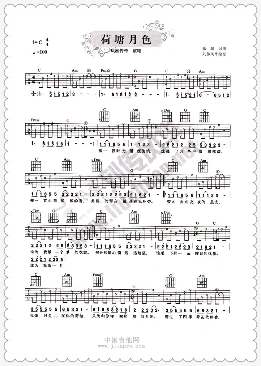 荷塘月色吉他谱 - 凤凰传奇 - 吉他弹唱谱