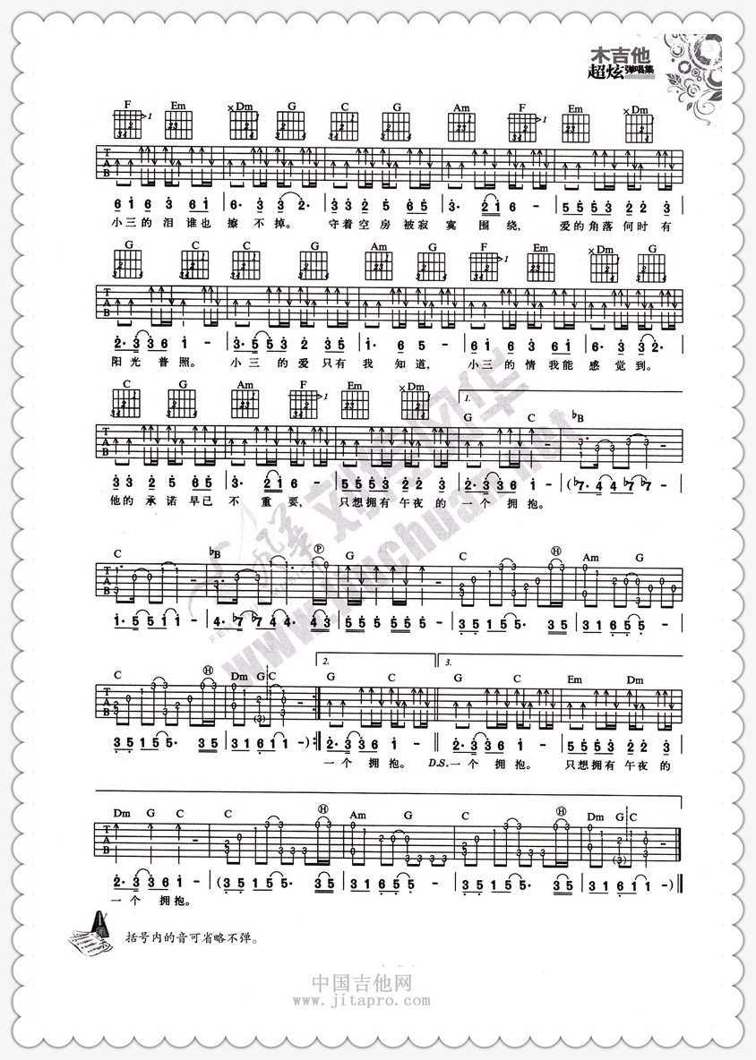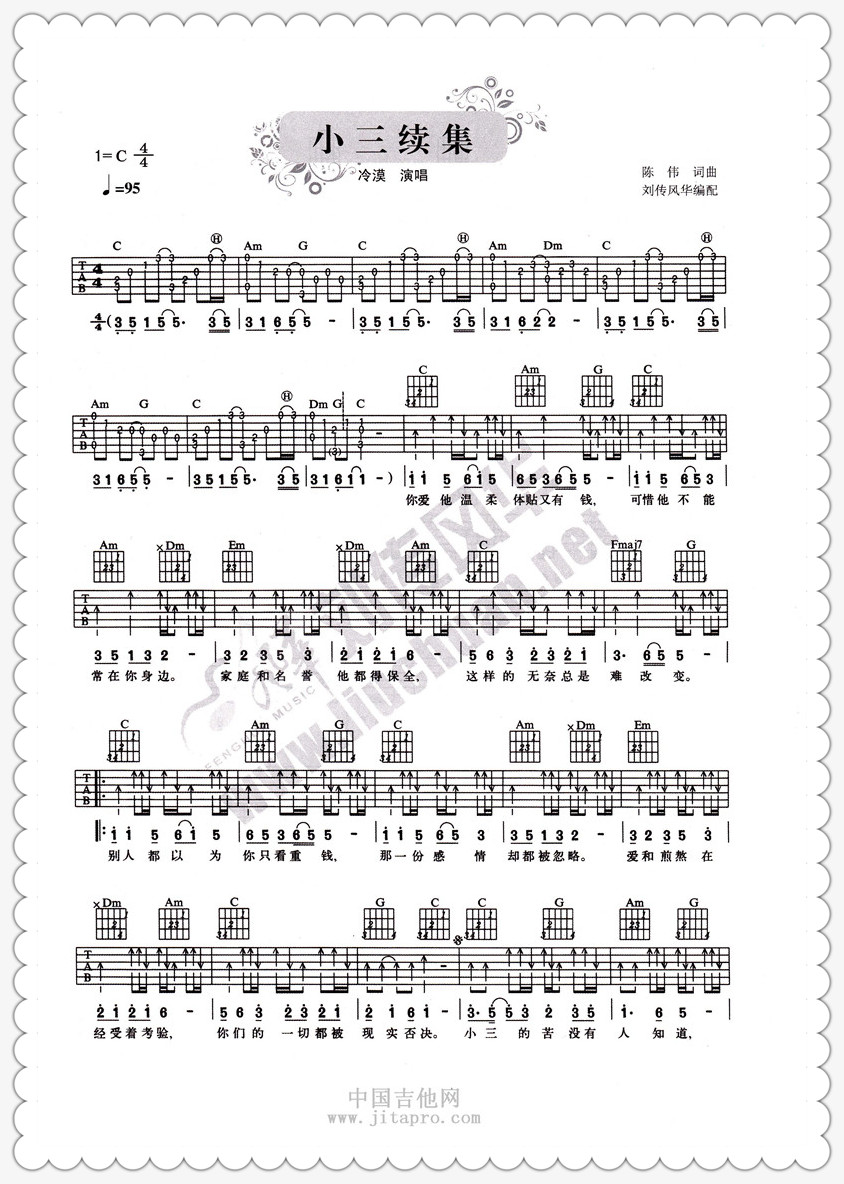 曲谱介绍: 冷漠《小三续集》吉他弹唱谱,共有2张高清图谱,免翻页排版设计。