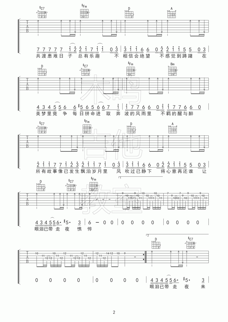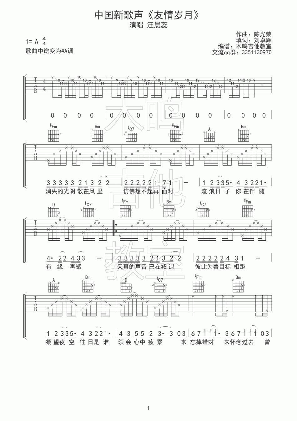 曲谱介绍: 汪晨蕊《友情岁月》吉他弹唱谱,共有3张高清图谱。