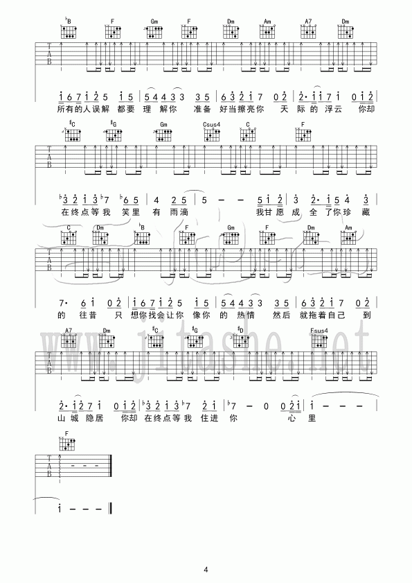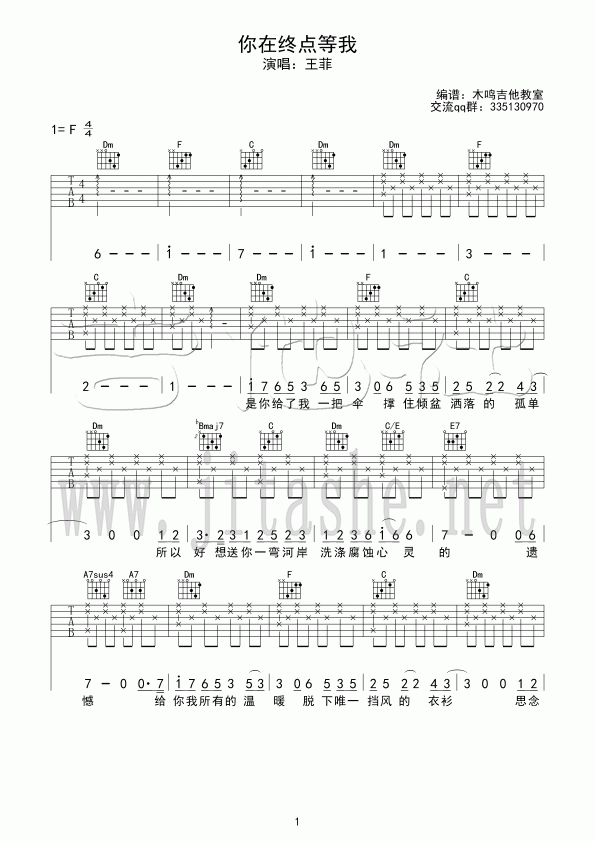 你在终点等我吉他谱 - 王菲 - 吉他弹唱谱