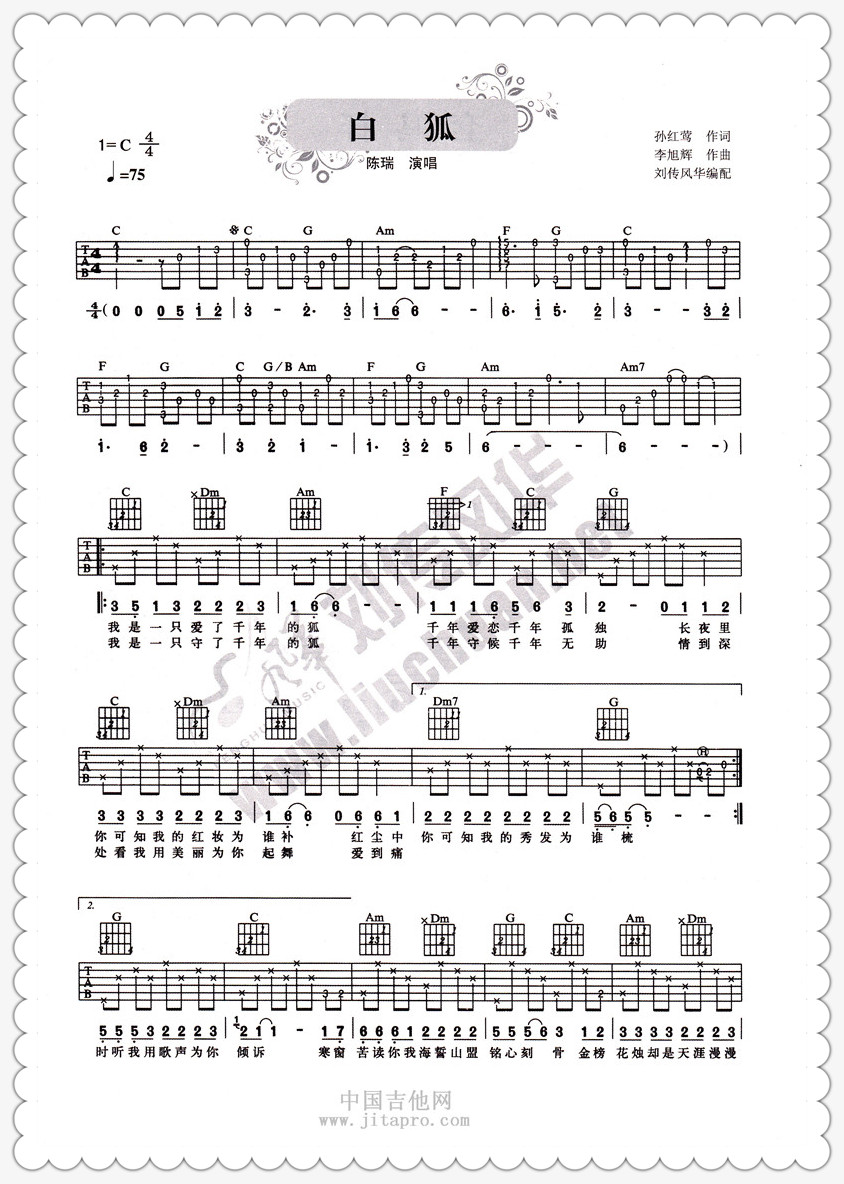 白狐吉他谱 - 陈瑞 - 吉他弹唱谱