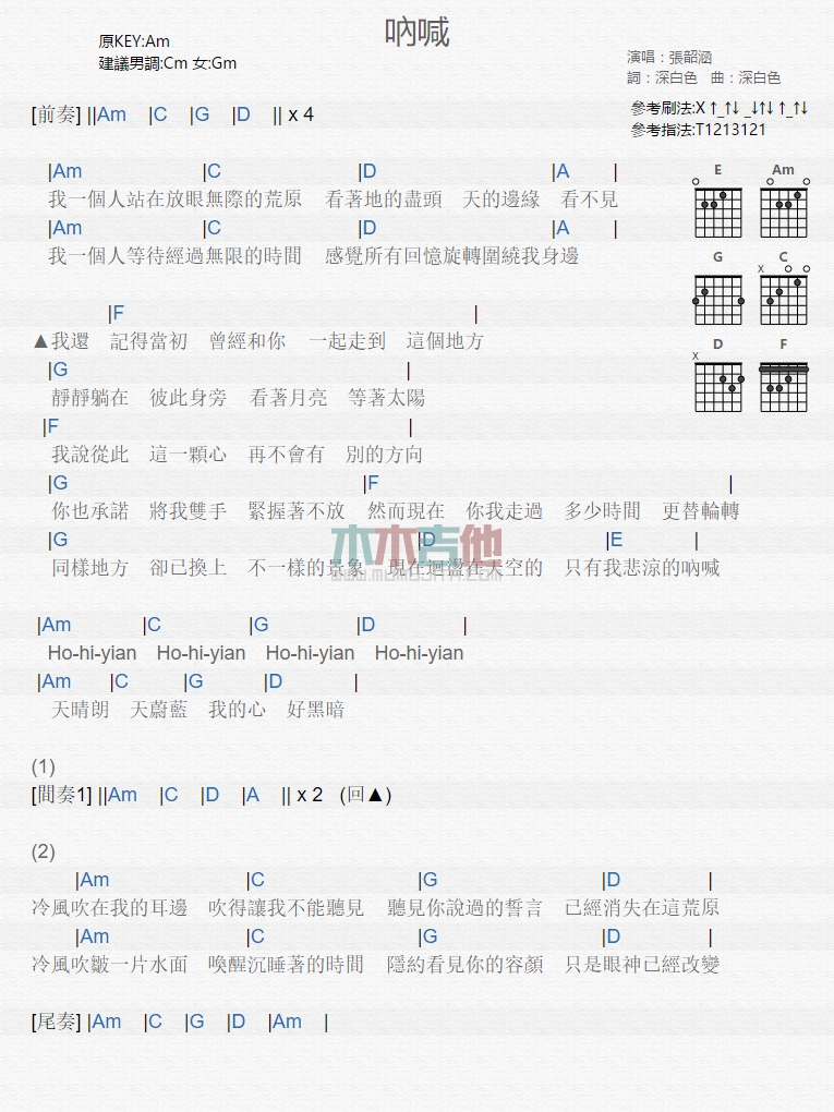 当前位置:琴谱网>吉他弹唱>呐喊