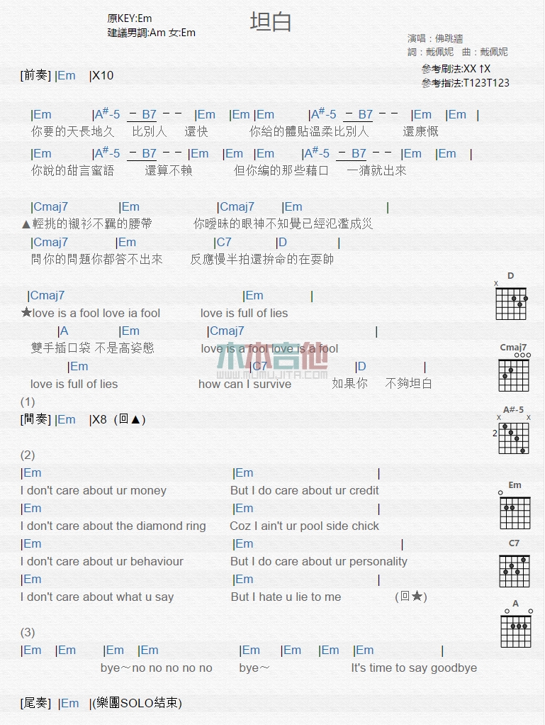 坦白吉他谱 - 佛跳墙 - 吉他弹唱谱