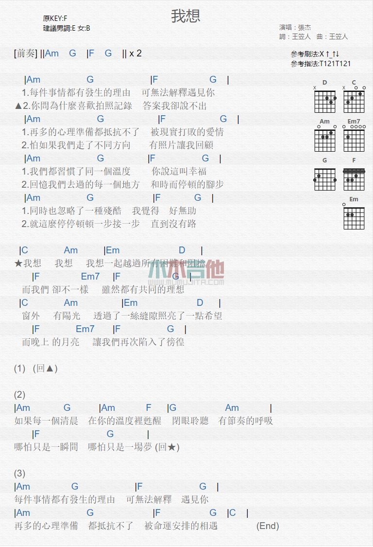 当前位置:琴谱网>吉他弹唱>我想