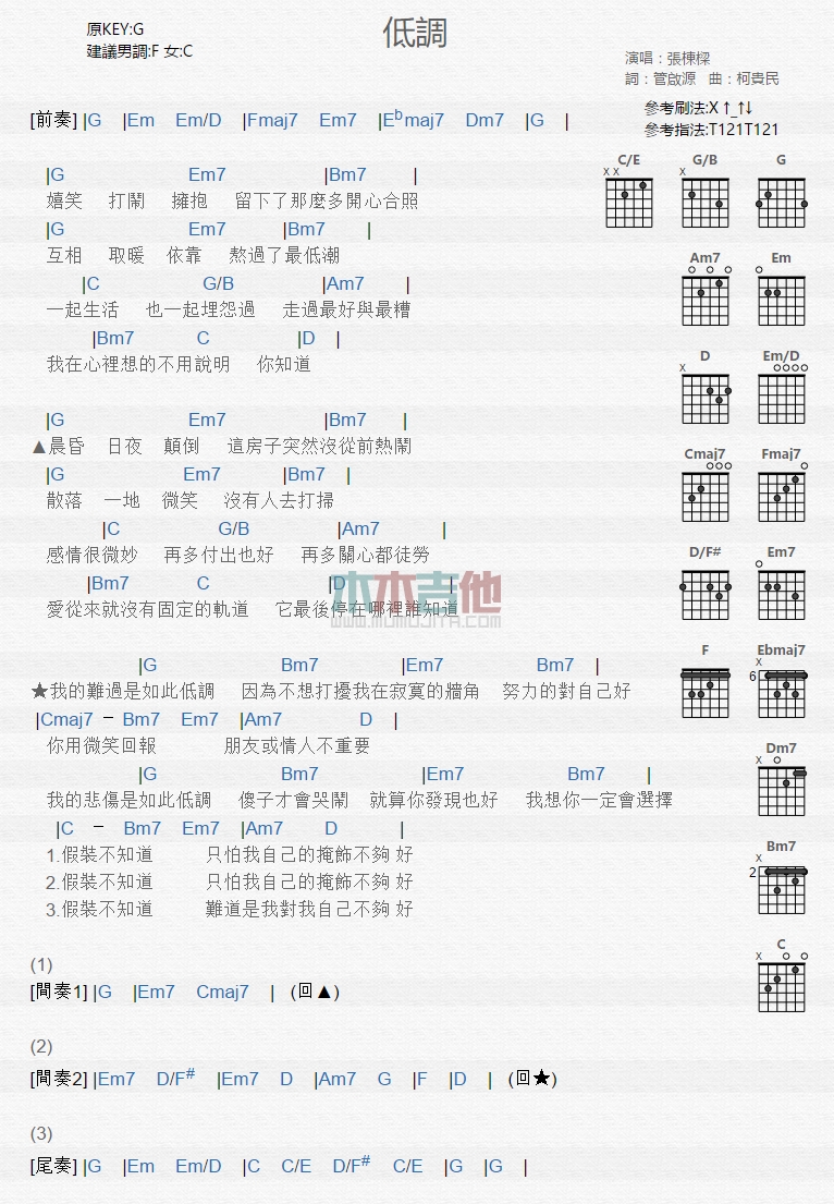 当前位置:琴谱网>吉他弹唱>低调
