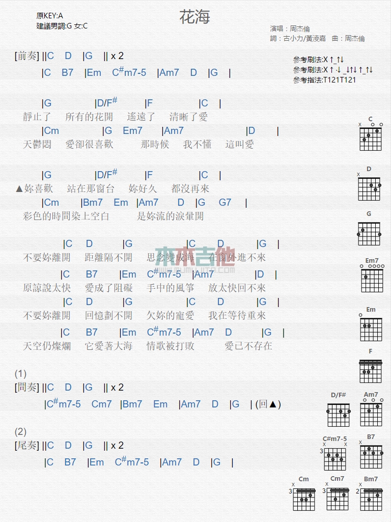 花海吉他谱 - 周杰伦 - 吉他弹唱谱