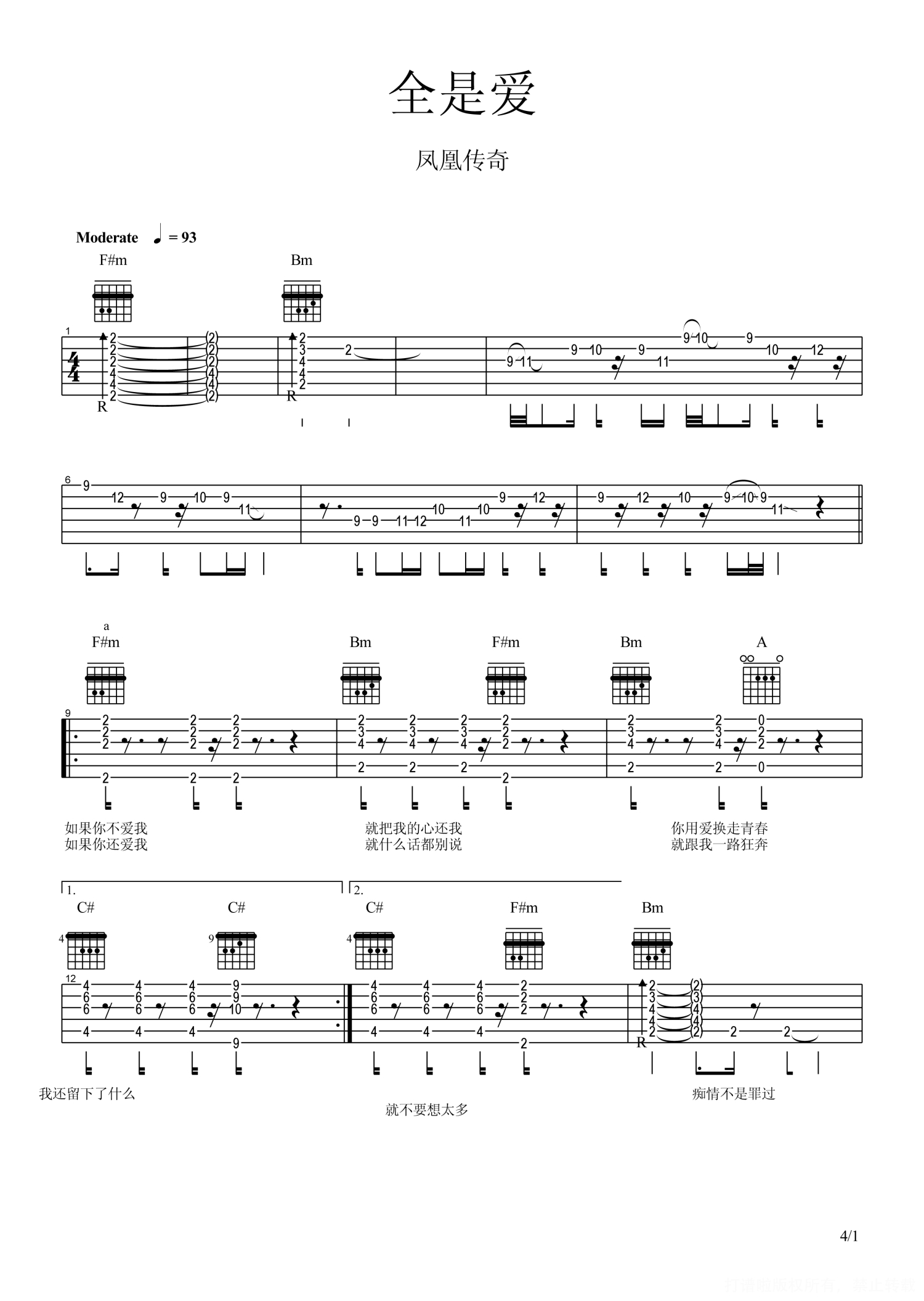 全是爱吉他谱 - 凤凰传奇 - 吉他弹唱谱