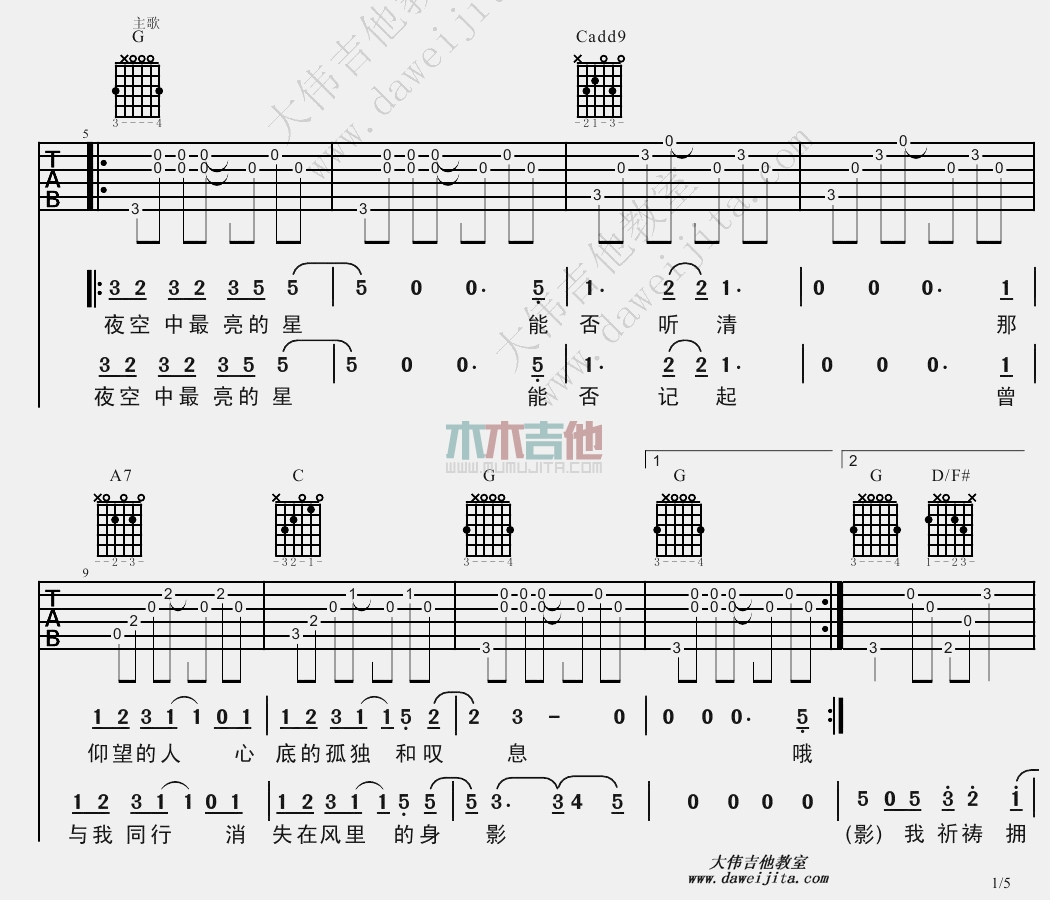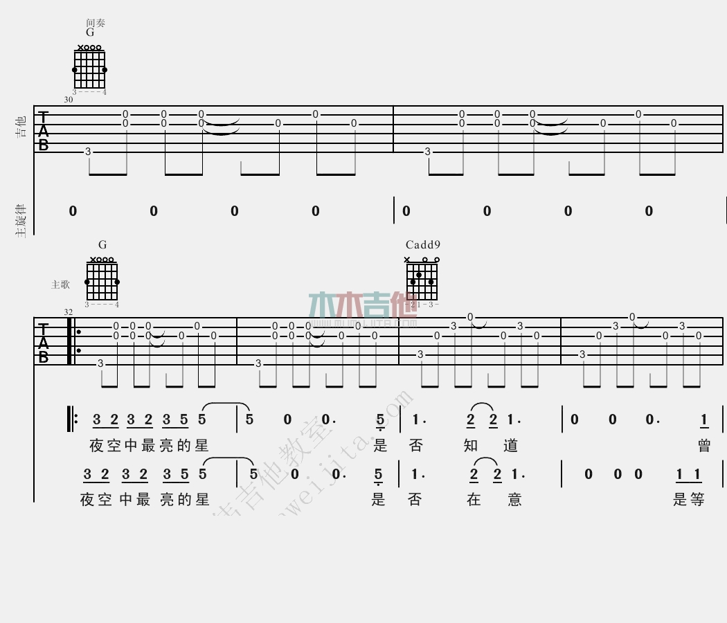 当前位置:琴谱网>吉他弹唱>夜空中最亮的星