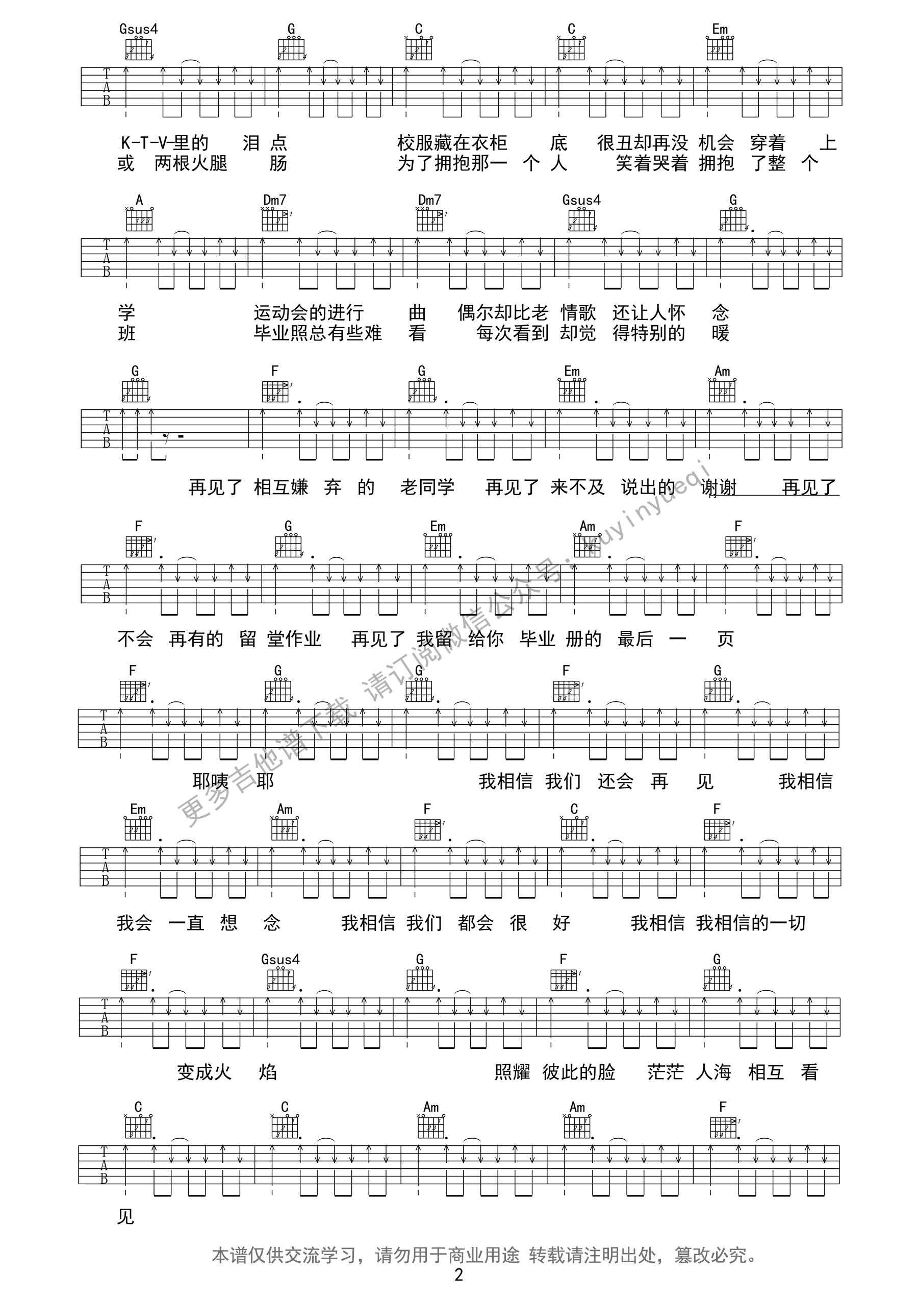 当前位置:琴谱网>吉他弹唱>不说再见