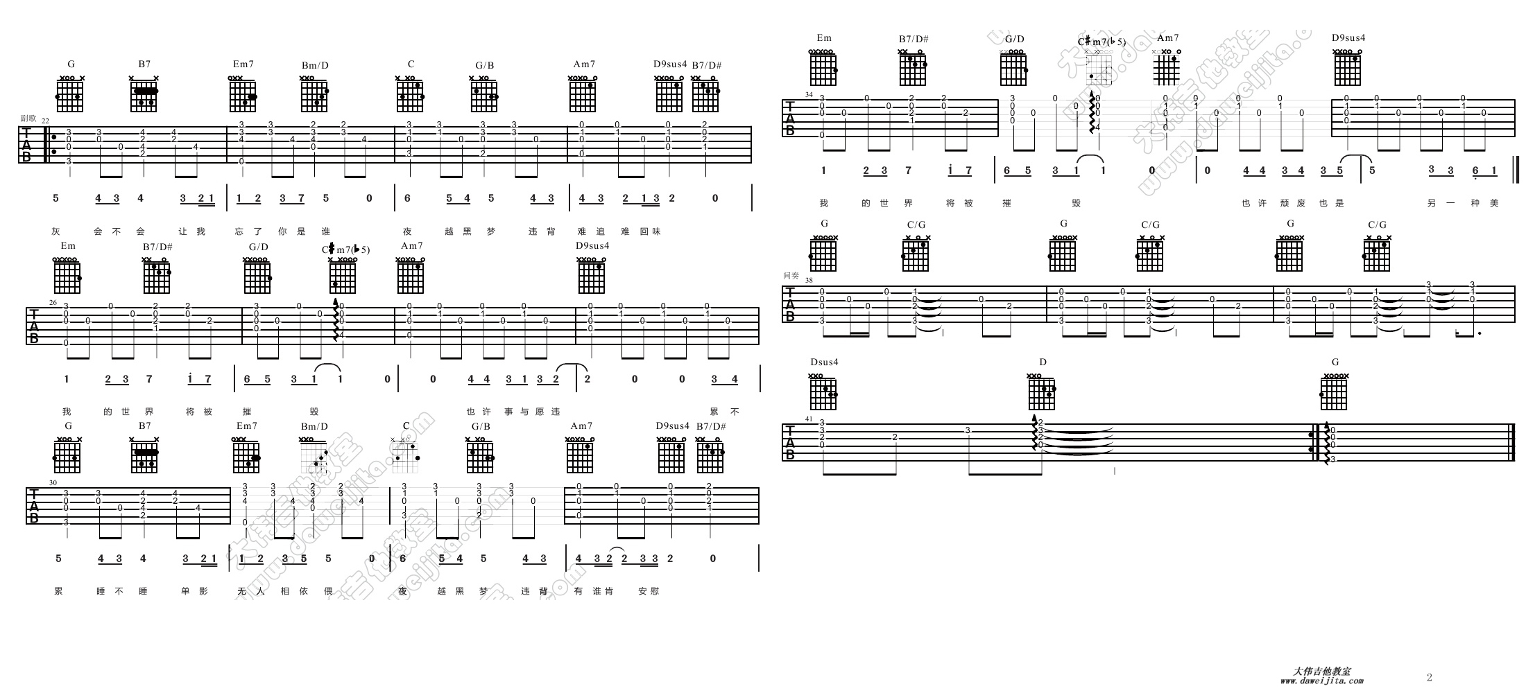 曲谱介绍: 周杰伦《世界末日》吉他弹唱谱,采用G调指法编配,共有2张高清图谱,免翻页排版设计。