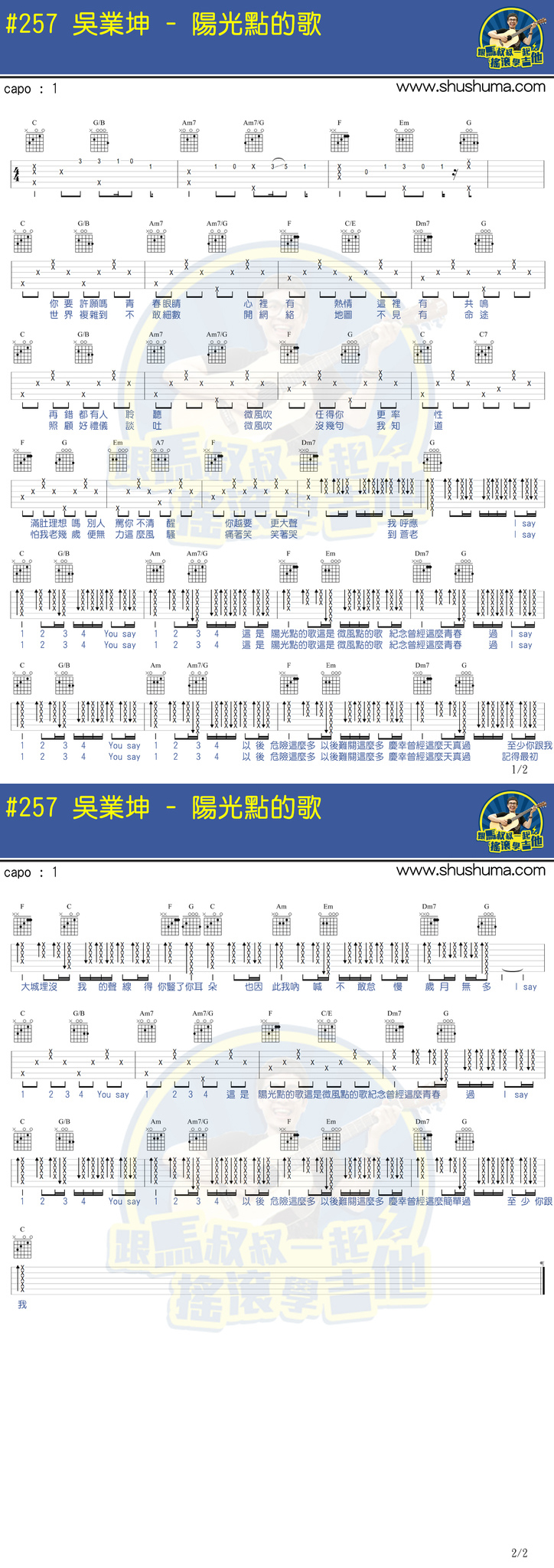 阳光点的歌吉他谱 - 吴业坤 - 吉他弹唱谱