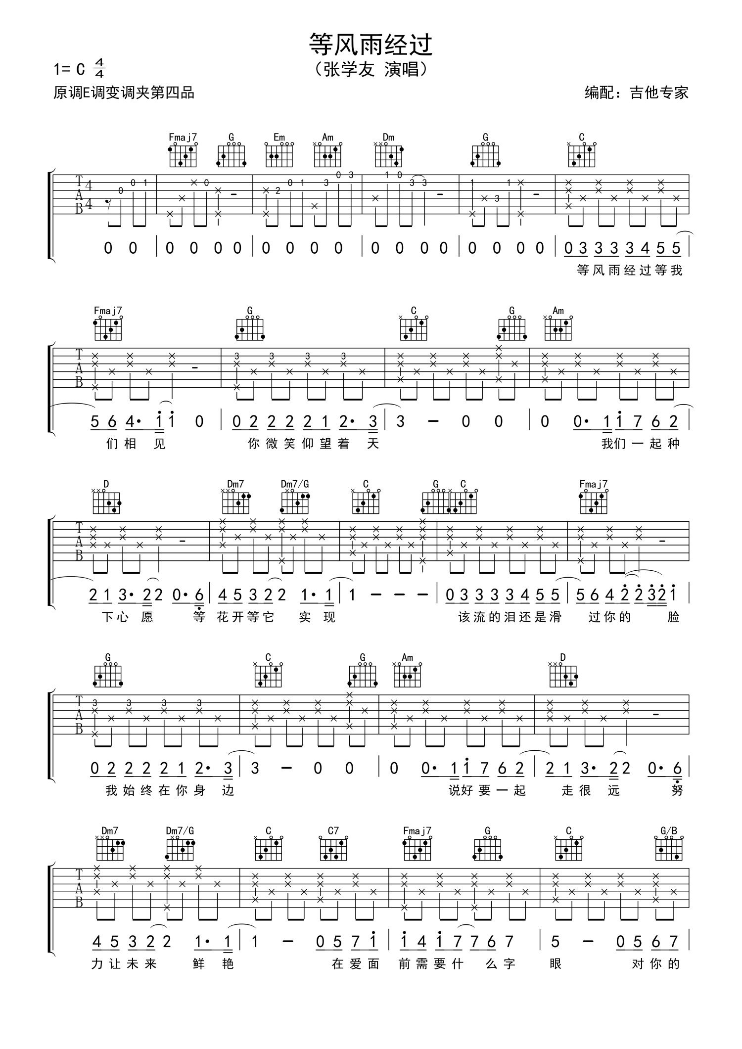 • 等风雨经过吉他谱 - 张学友 - C调吉他弹唱谱第1张