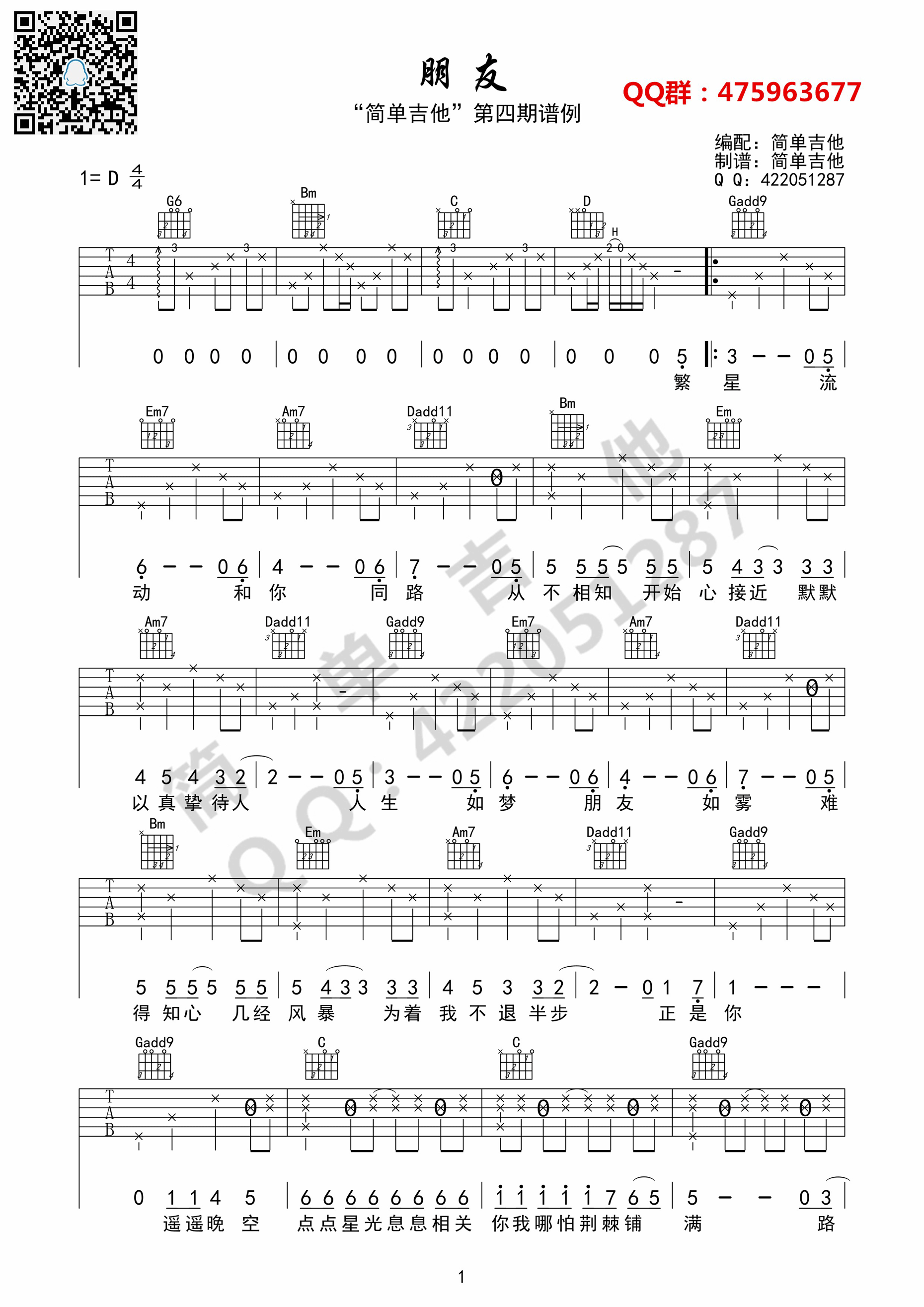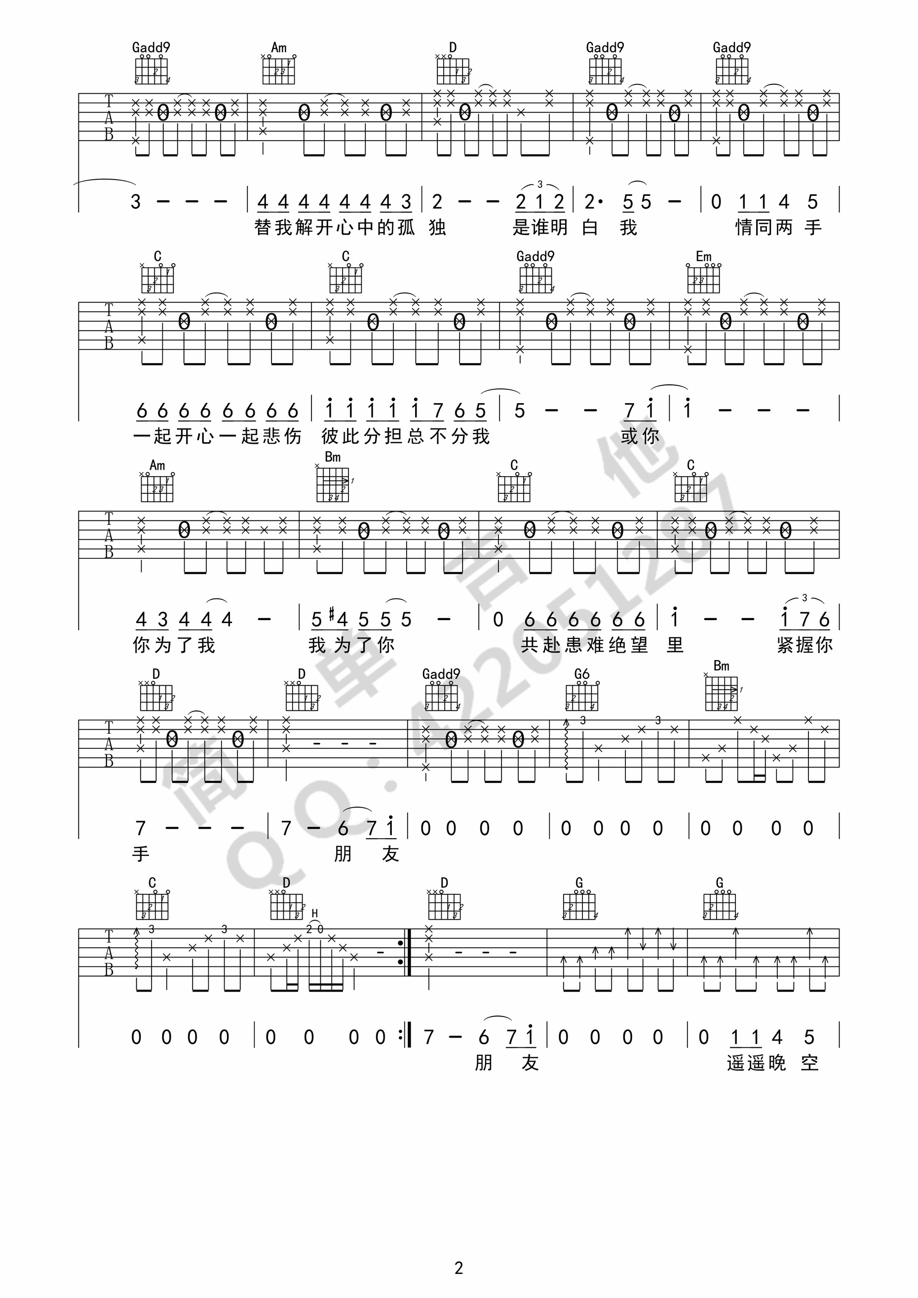 曲谱介绍: 谭咏麟《朋友》吉他弹唱谱,共有3张高清图谱。