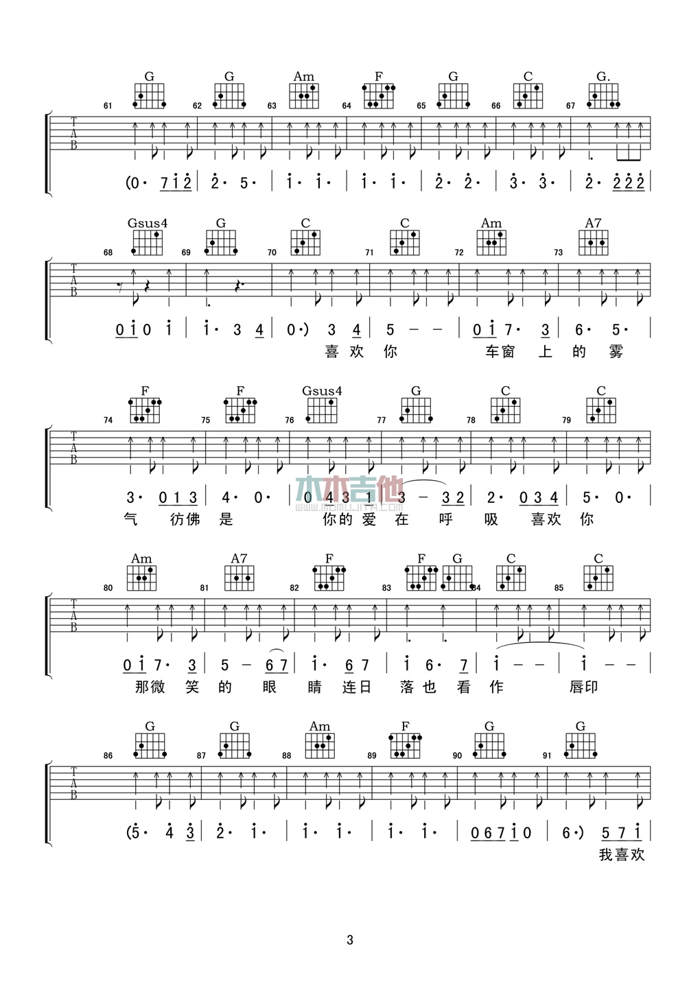 曲谱介绍: 徐佳莹《喜欢你》吉他弹唱谱,共有5张高清图谱。