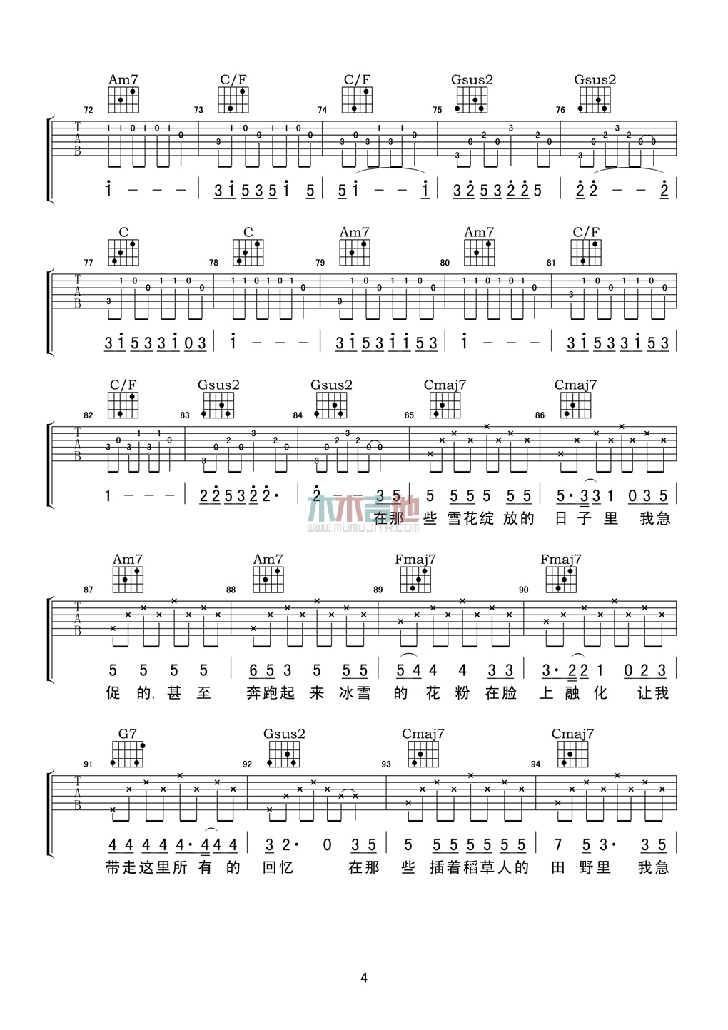 当前位置:琴谱网>吉他弹唱>Song F