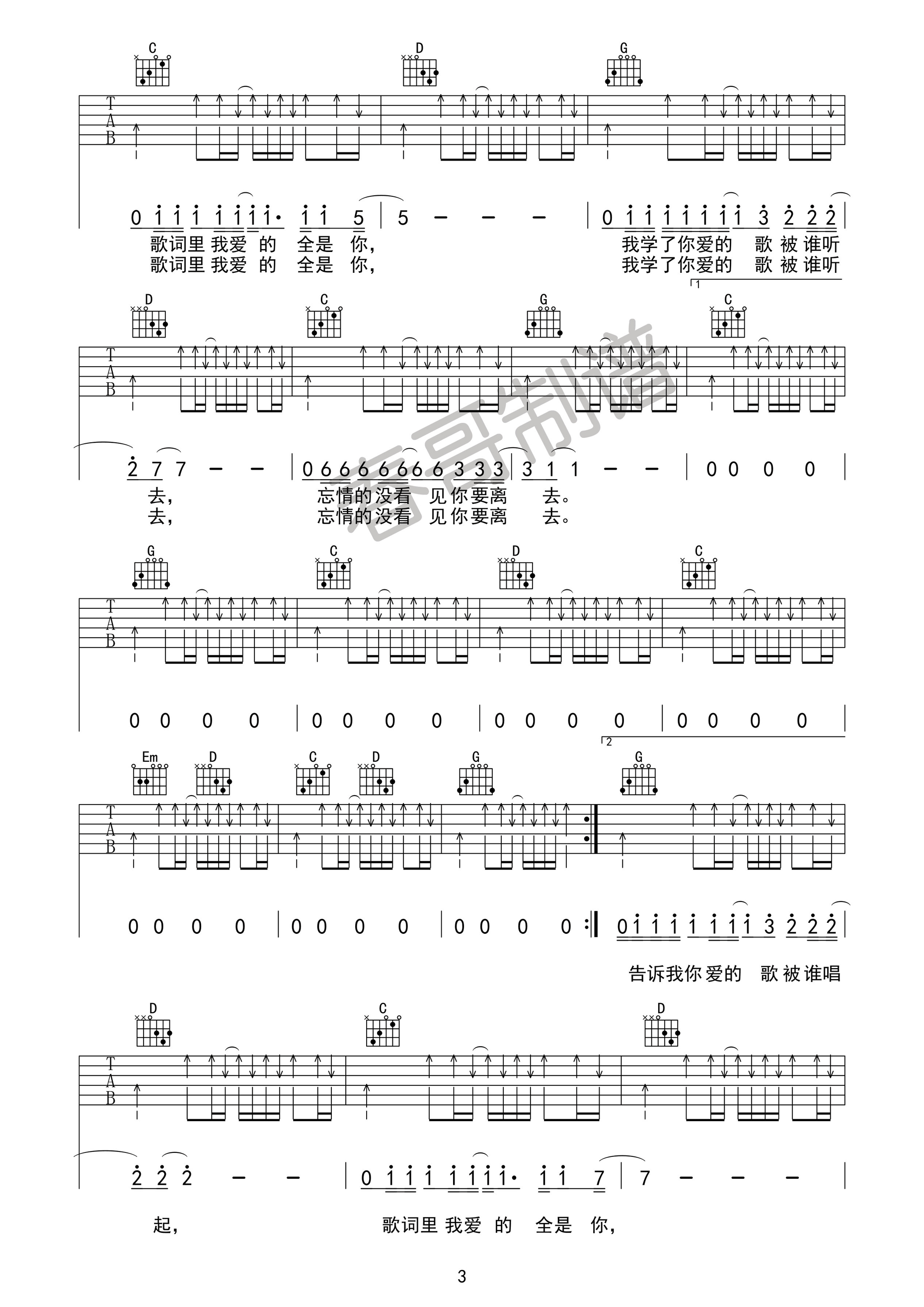 当前位置:琴谱网>吉他弹唱>表