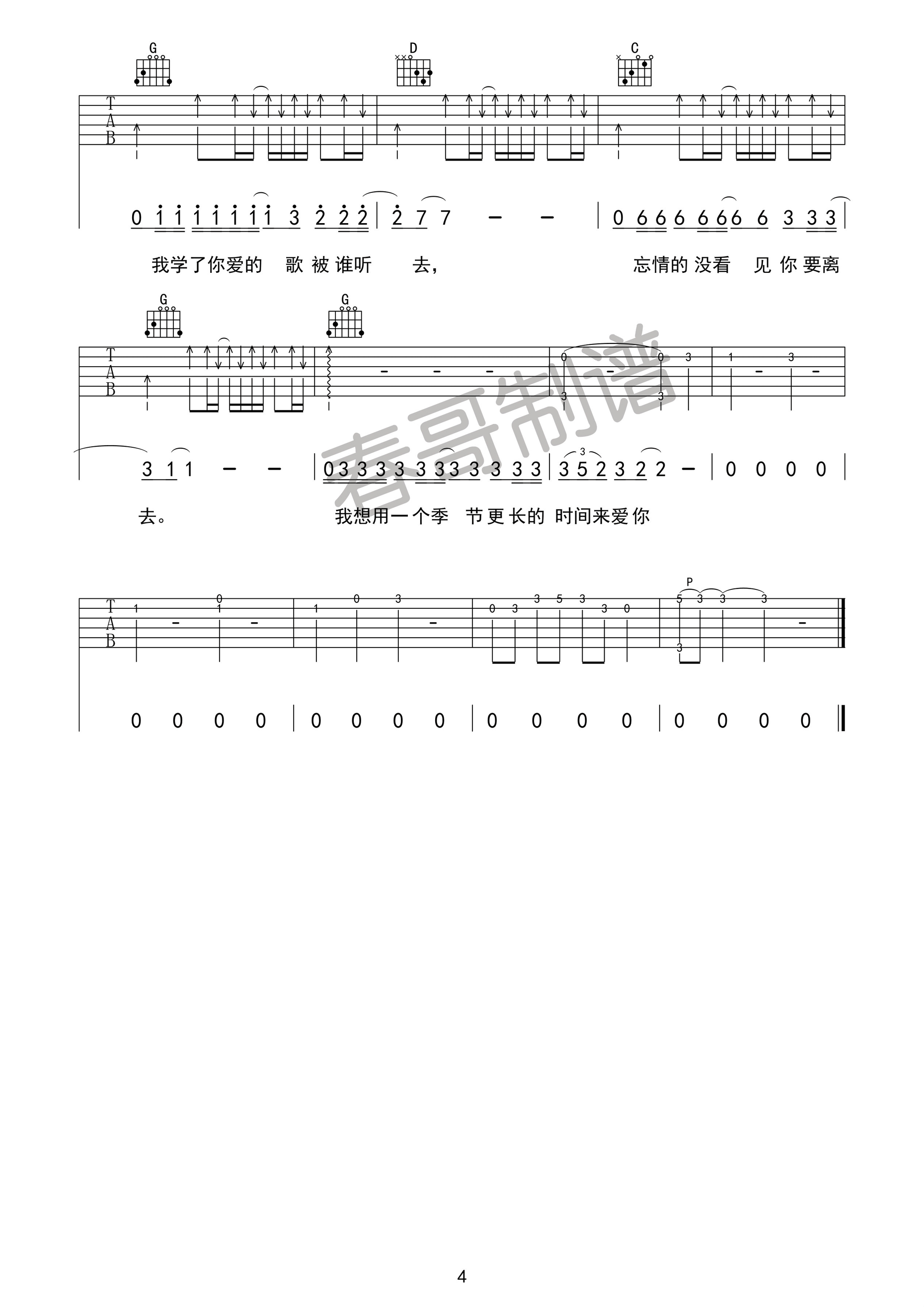曲谱介绍: 马頔《表》吉他弹唱谱,共有4张高清图谱。