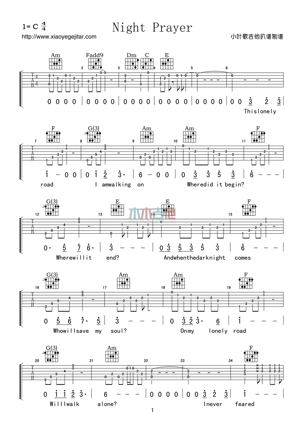 当前位置:琴谱网>吉他弹唱>Night Prayer